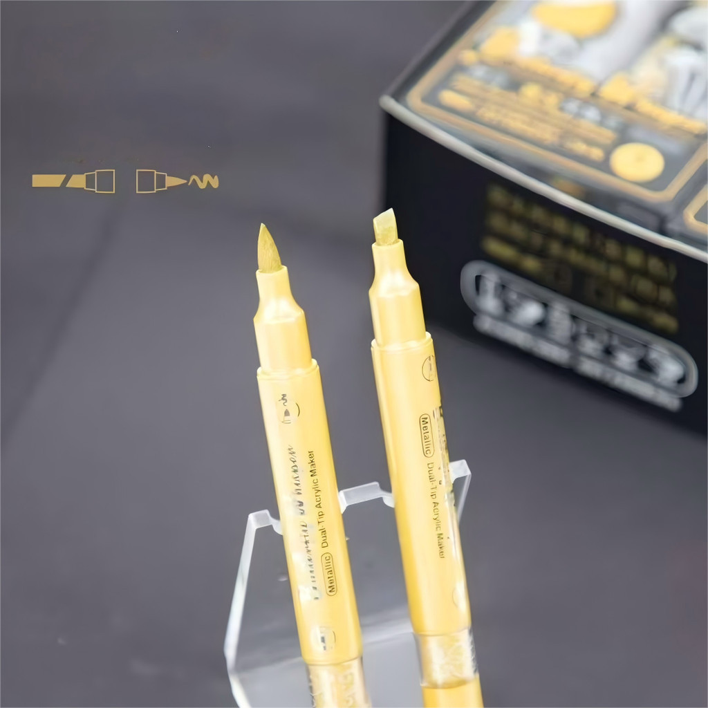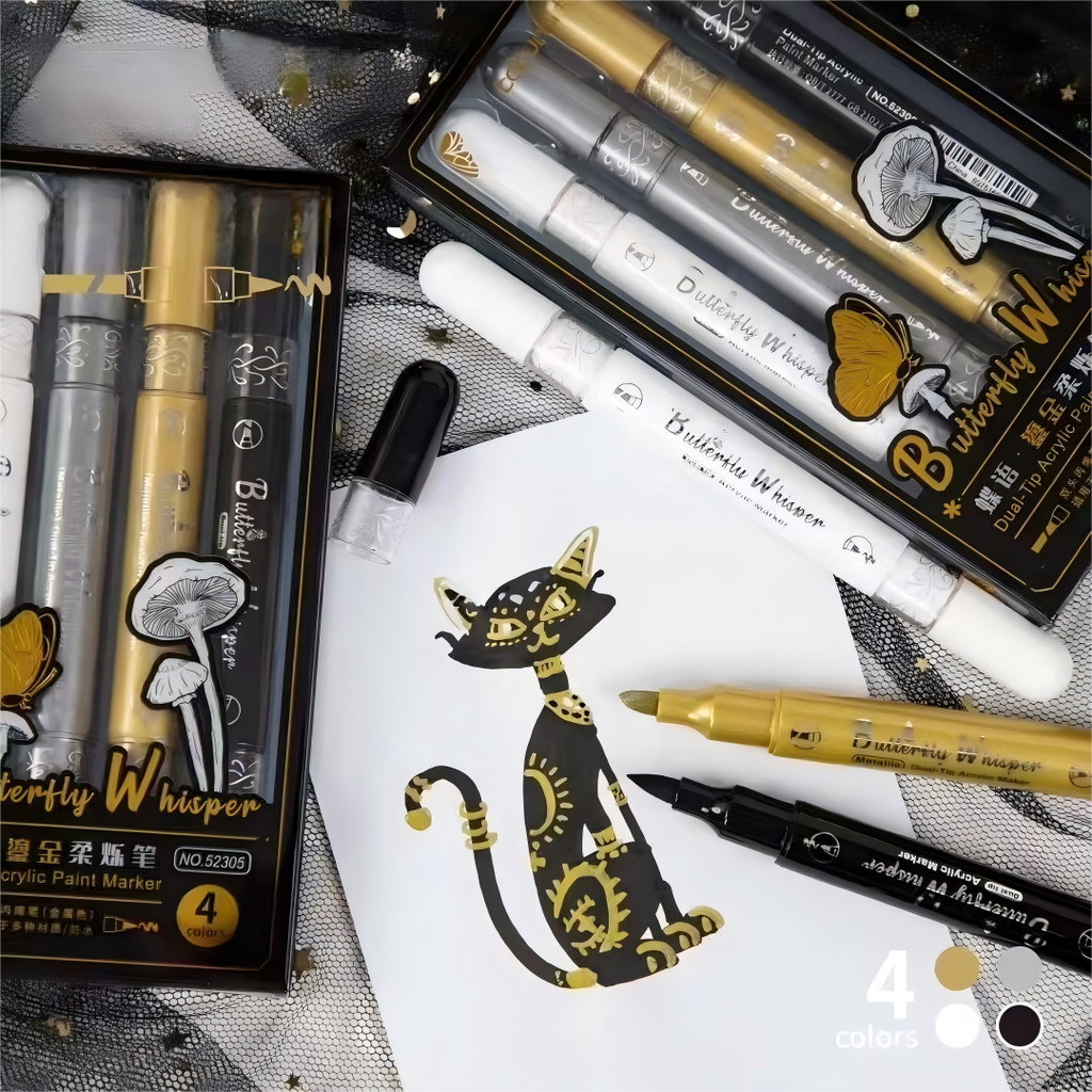 Kit 4 Caneta permanente de acrílico com ponta dupla em metal para resina, artesanato e artigos de papelaria.