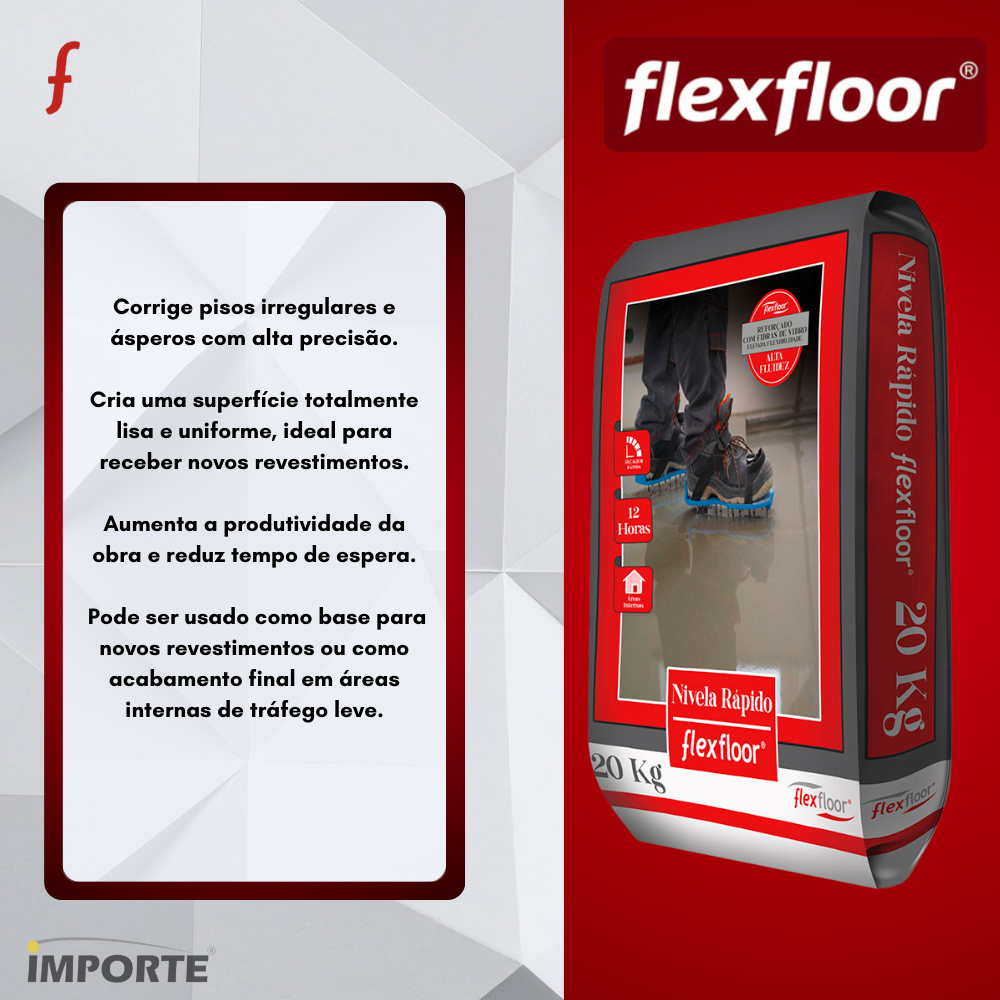 Autonivelante Nivela Fácil Flexfloor 20kg Secagem Rápida Para Regularizar Piso Interno Para Obras