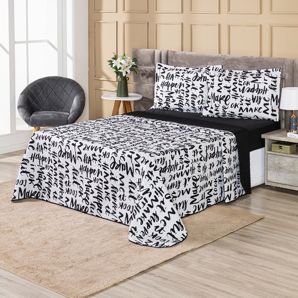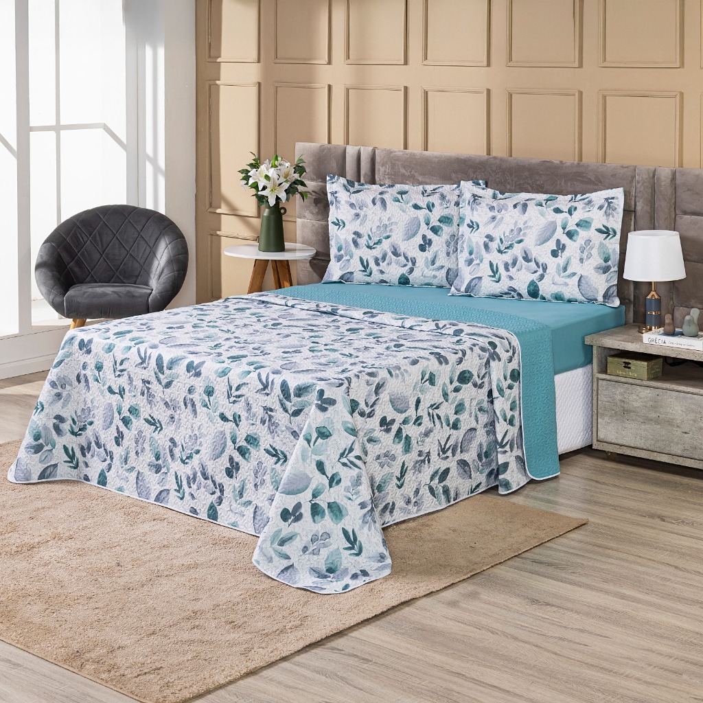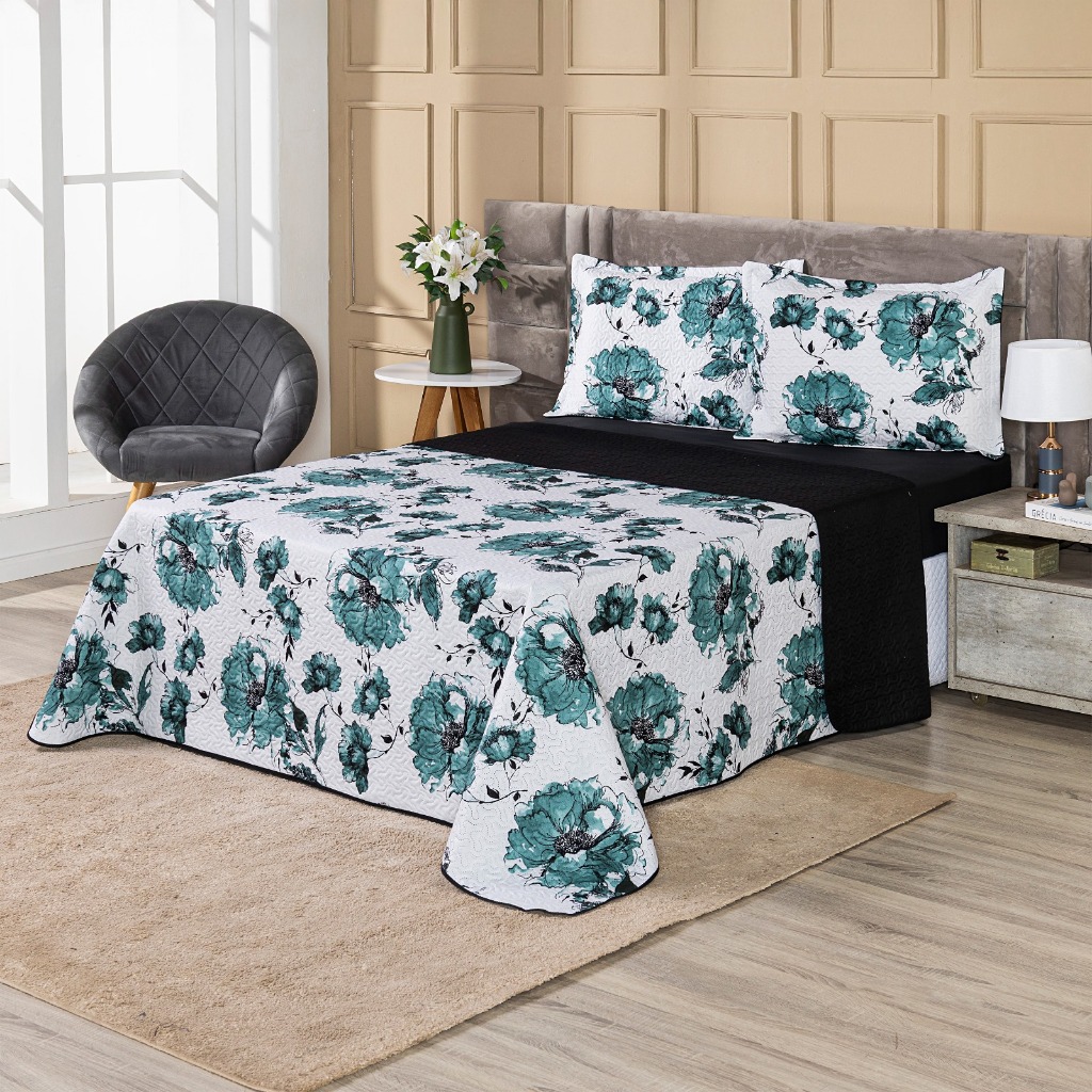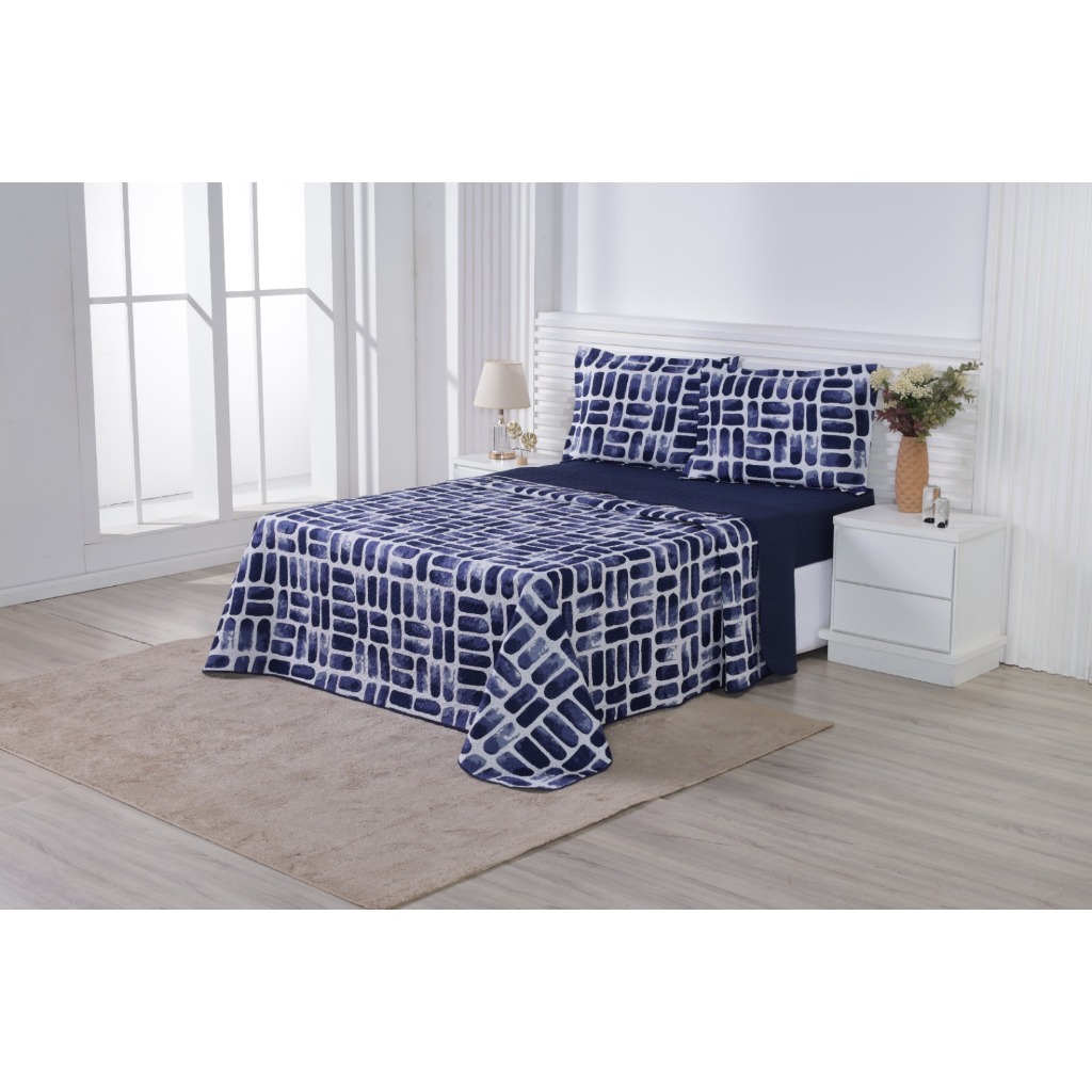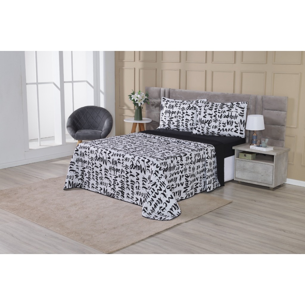 Kit Cobre Leito Casal Padrão 3 Peças Dupla Face Bouti 200 Fios Micro Percal Toque Macio