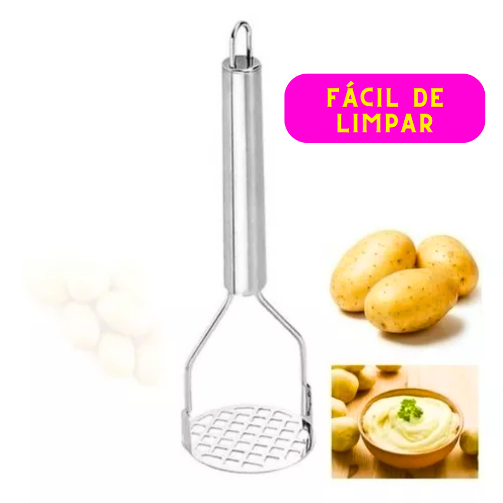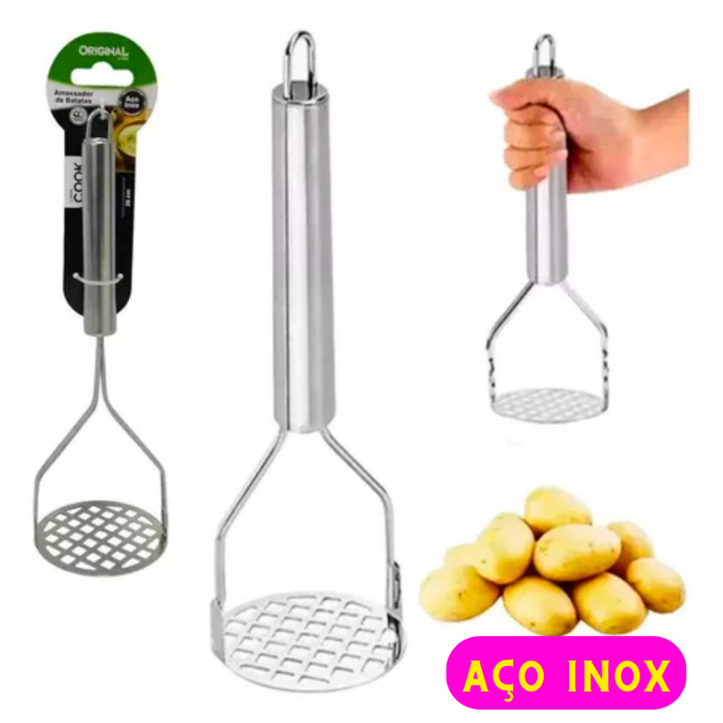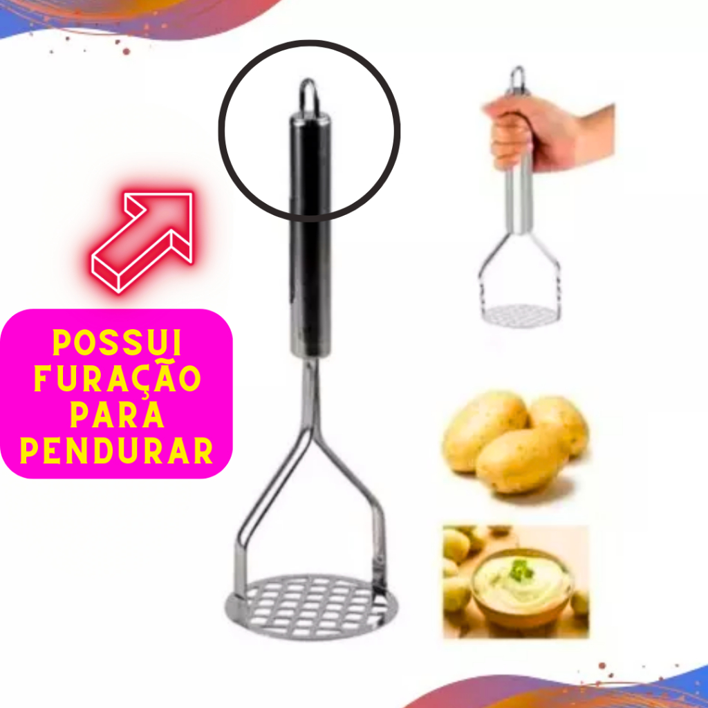 Amassador Batatas Espremedor Manual Legumes Multiuso Aço Inox com Cabo para Pendurar
