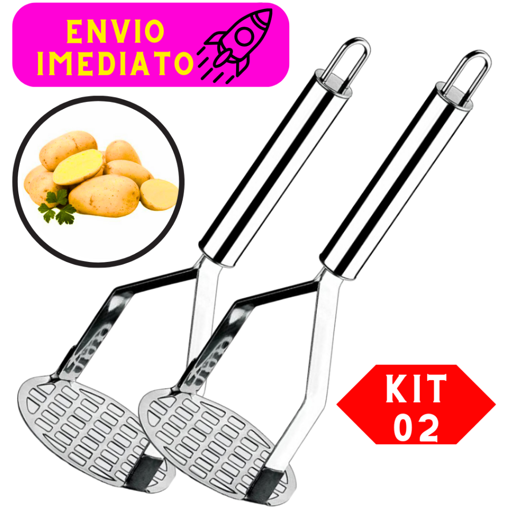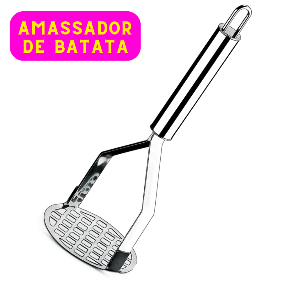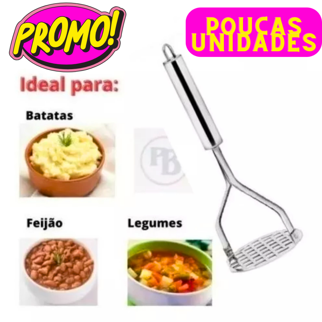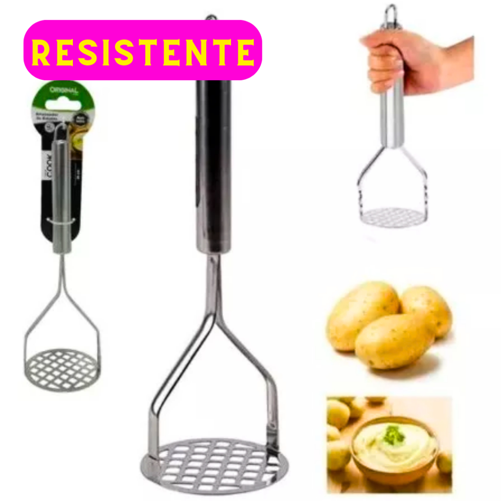 Amassador Batatas Espremedor Manual Legumes Multiuso Aço Inox com Cabo para Pendurar