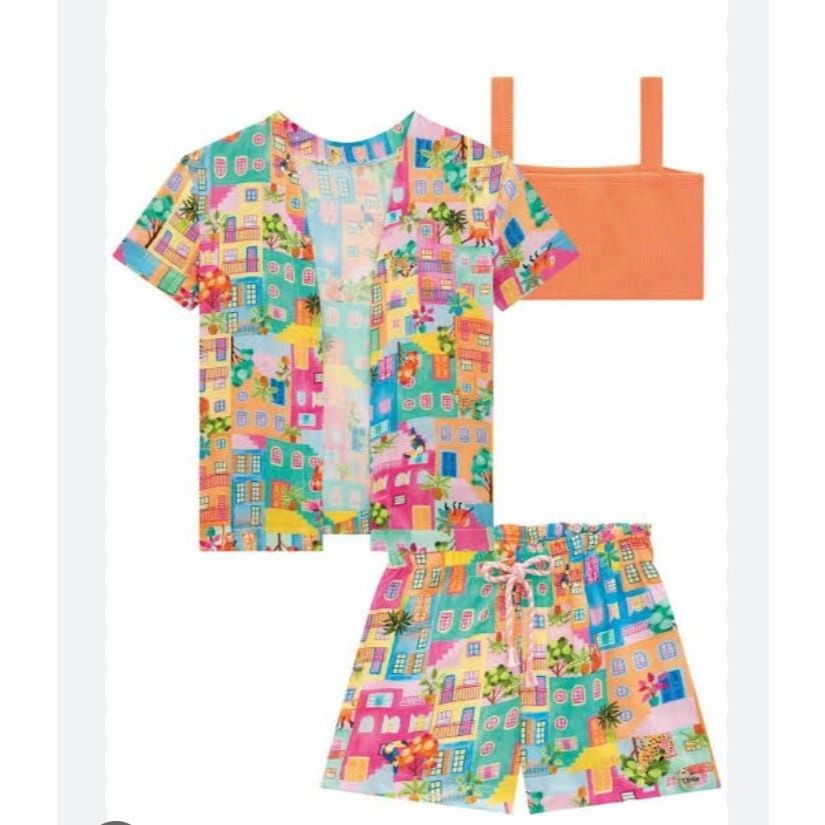 Molde conjunto de kimono + top+ short stilo praia INFANTIL MENINA 4526