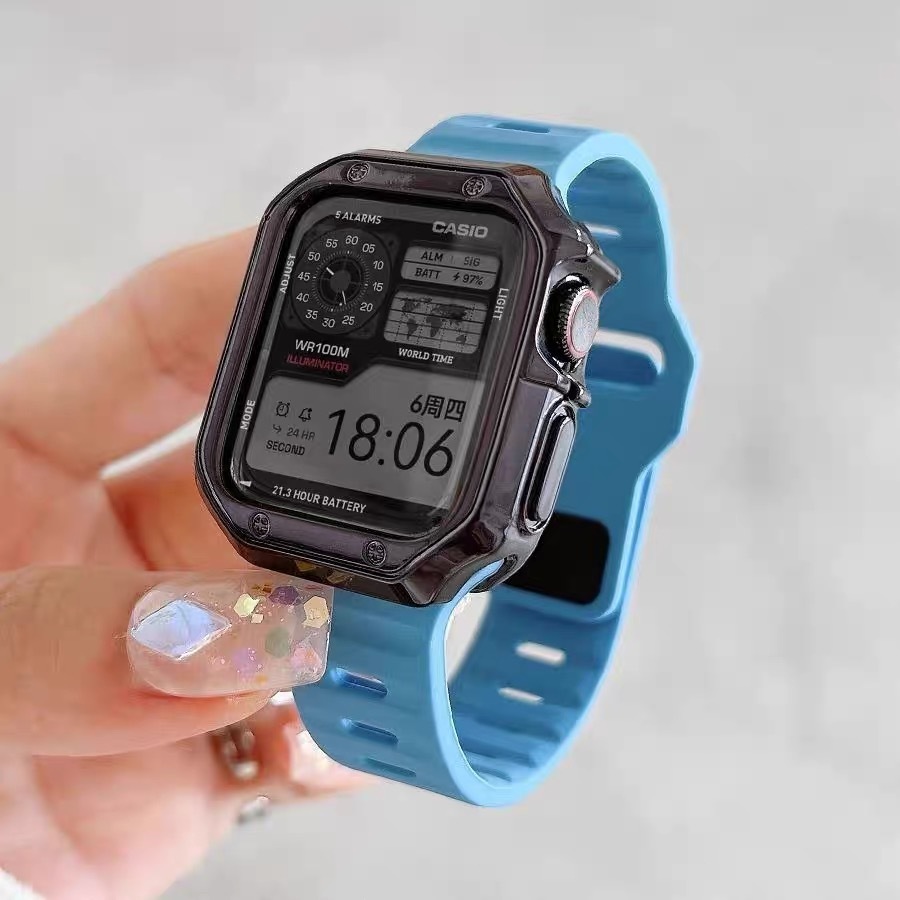 Macio Pulsiera Silicone+Meia Case Kit Para Apple Watch Ultra 49mm 44mm 40mm 41mm 38mm 42mm 45mm iWatch 10 11 46mm Capa