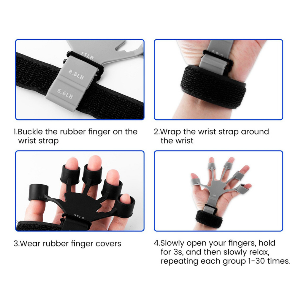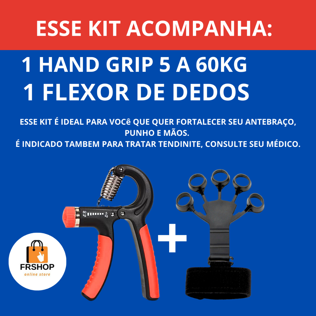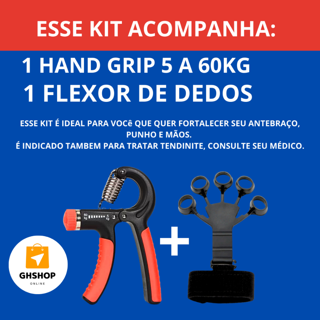 Kit Hand Grip de Dedo + Flexor de Punho Ajustável Fisioterapia Exercício para Mãos