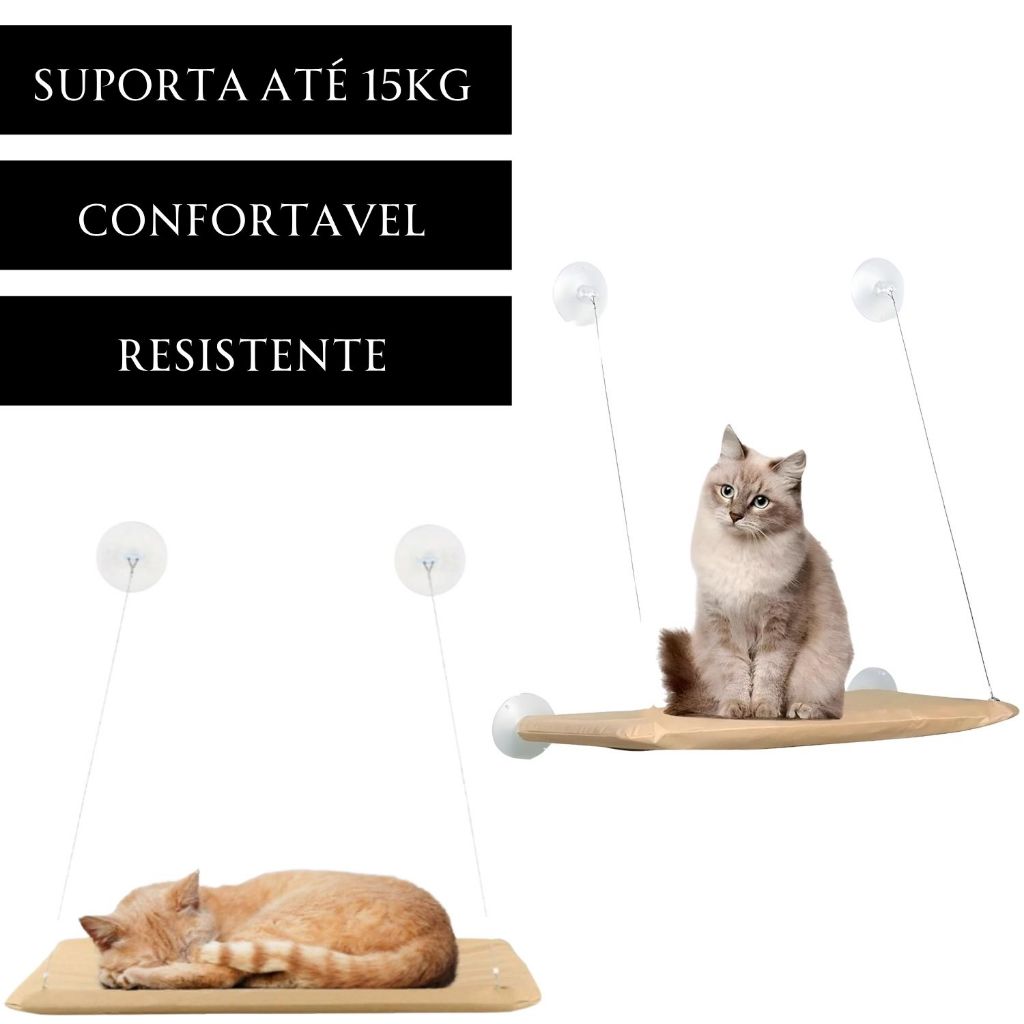 Cama Gato Pet Suspensa Janela Ventosa Reforçada Rede Confort Caminha Até 12kg