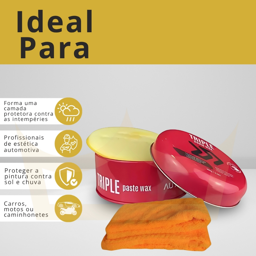 Cera De Carnaúba Triple Paste Wax 100gr Autoamérica + Pano