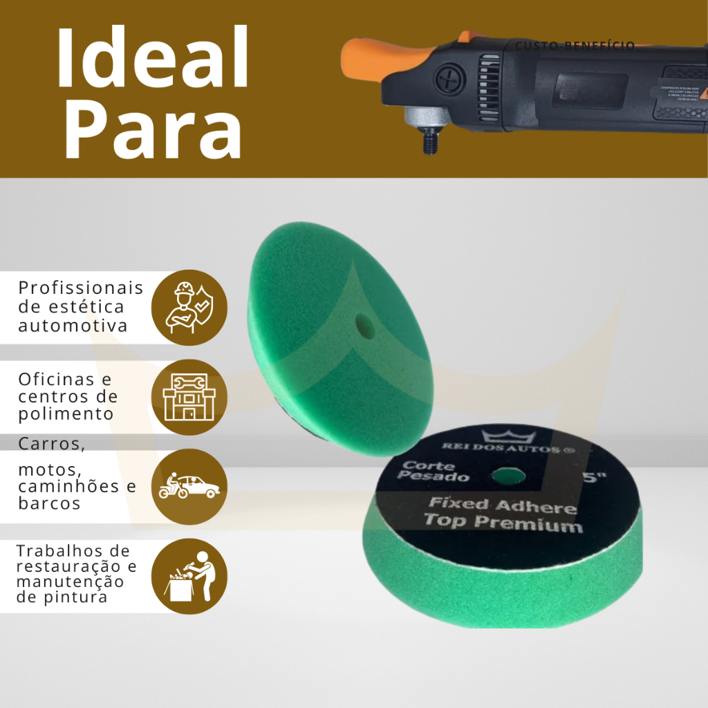 Boina Espuma para polimento 5"Corte Pesado Verde Fixed Adhere Top Premium