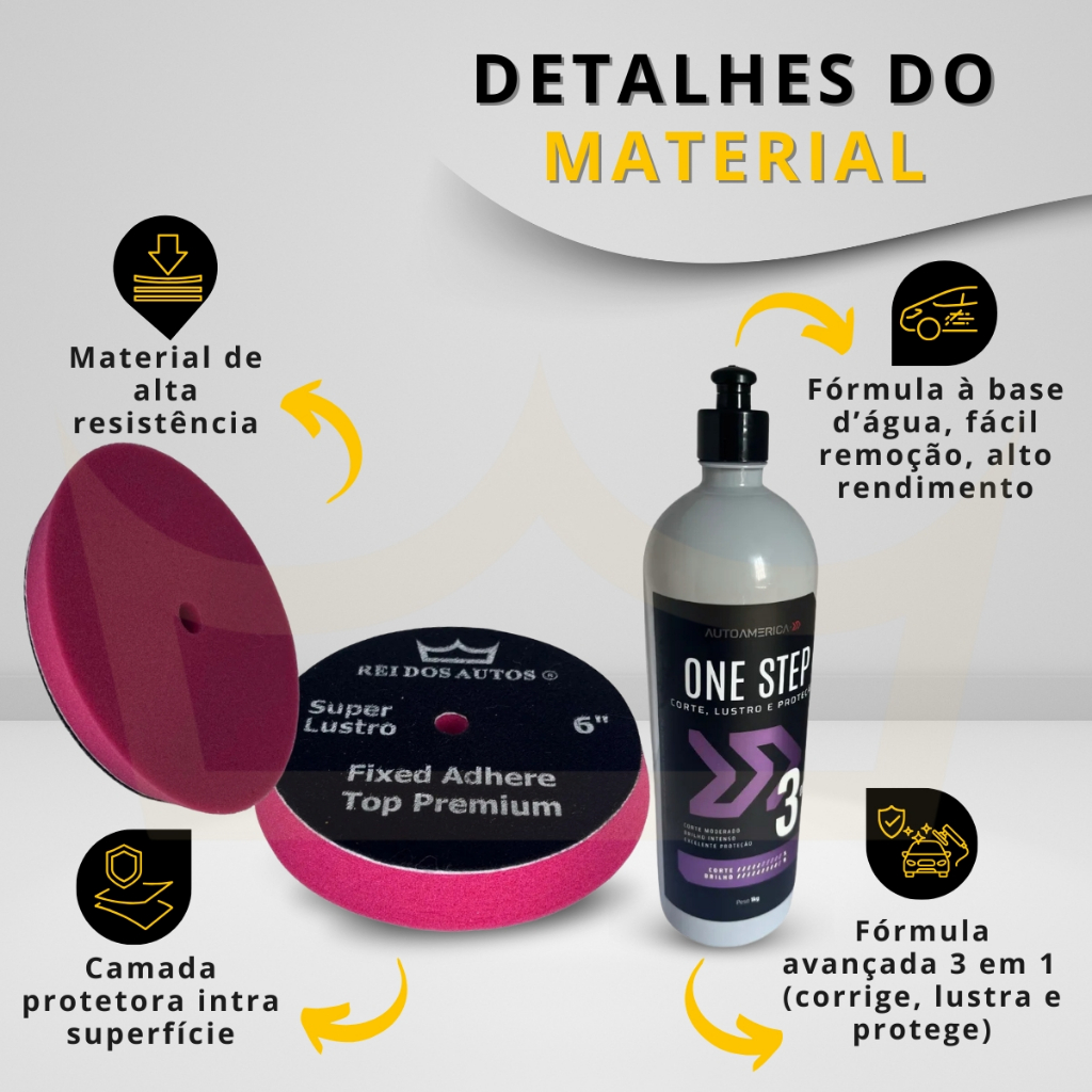 Kit Polimento Profissional One Step Fast Cut Boinas 6 Polegadas Top Premium Corte Refino Lustro