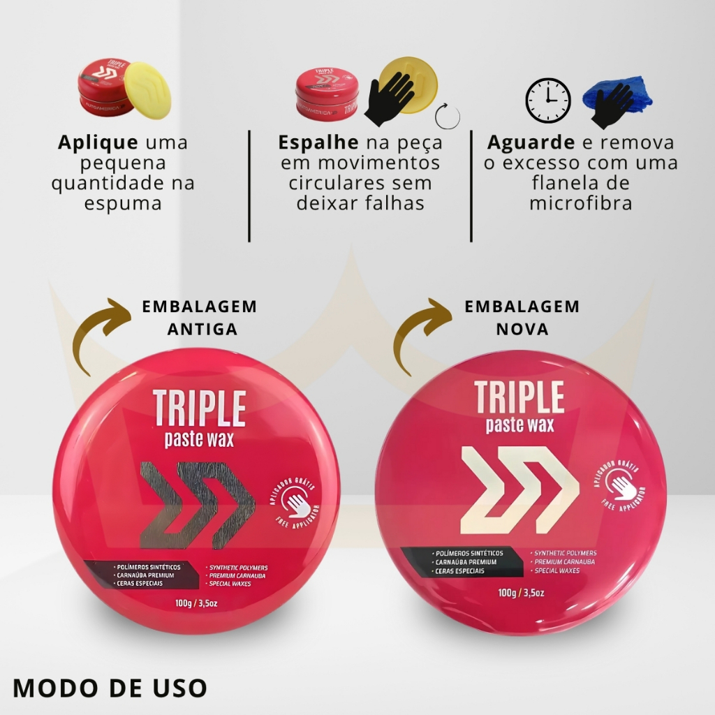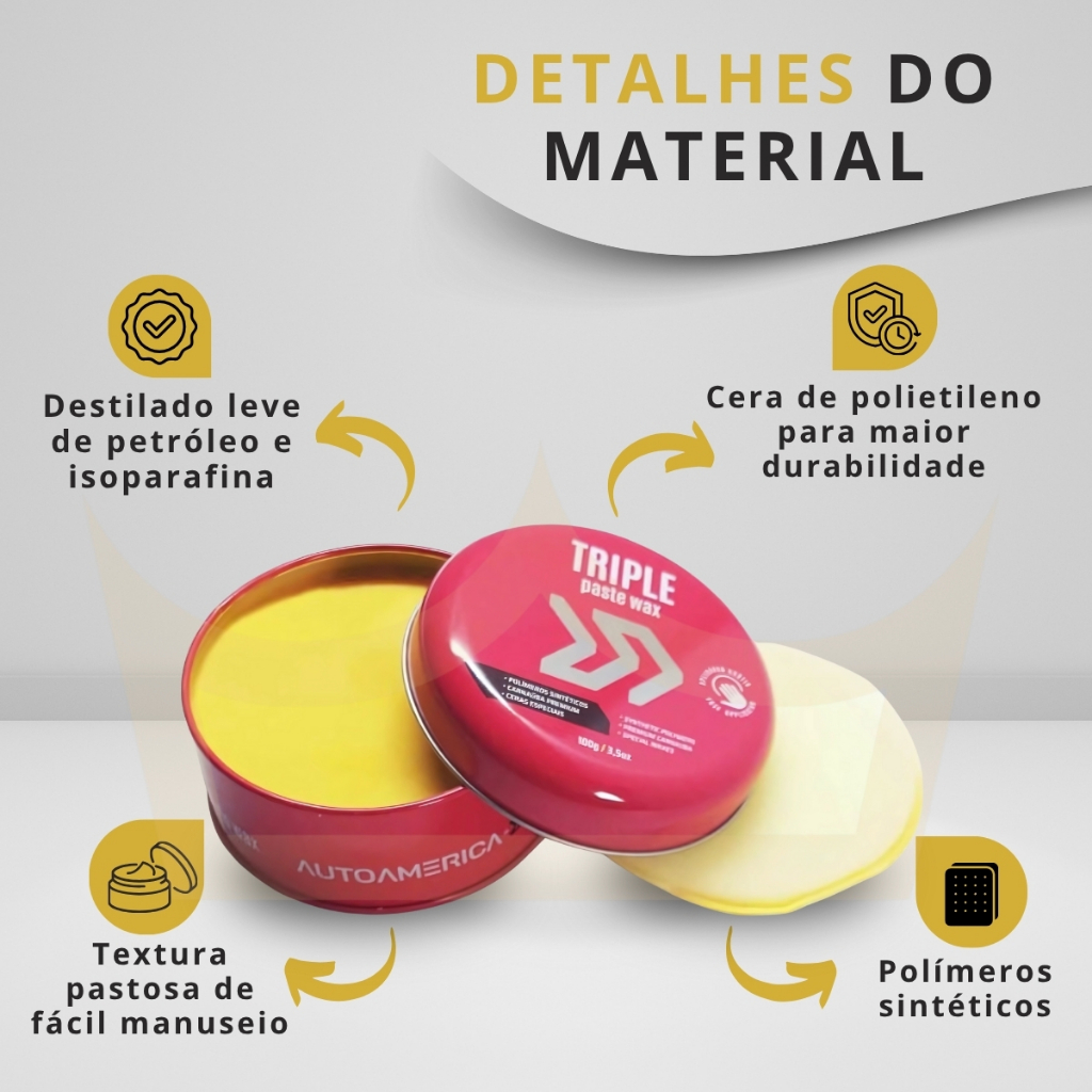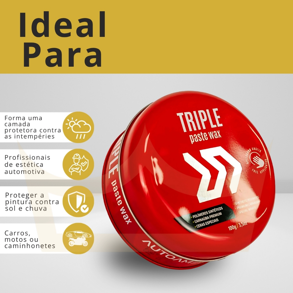 Cera De Carnaúba Triple Paste Wax 100gr Autoamérica brilho e proteção carro moto moveis