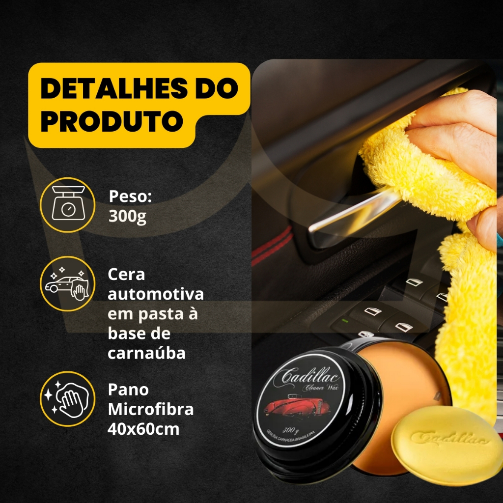 Kit Cera Cleaner Carnaúba 300g e Pano Microfibra 40cmx60cm Profissional Cadillac