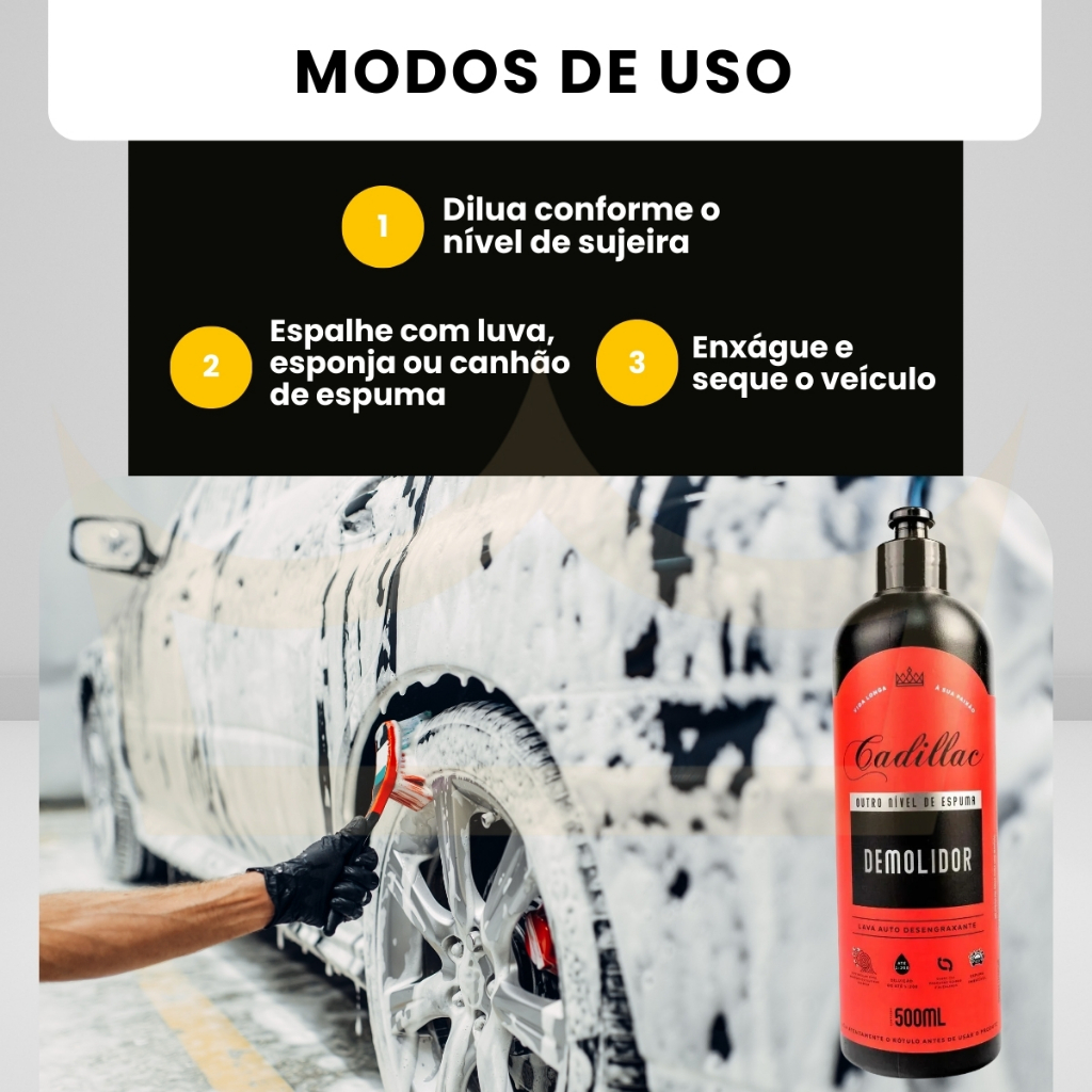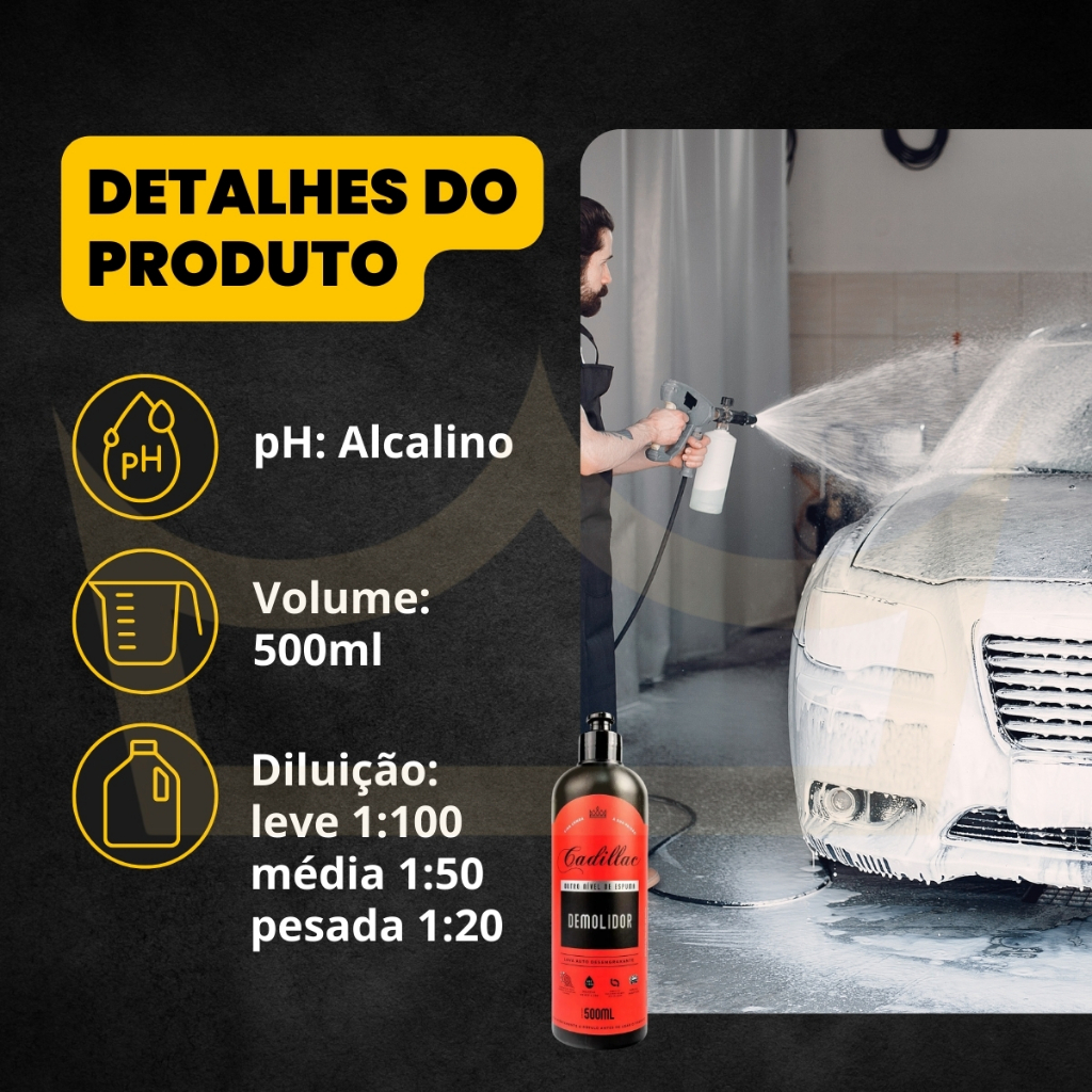 Desengraxante Automotivo Cadillac Demolidor 500ml Shampoo Profissional Rei dos Autos