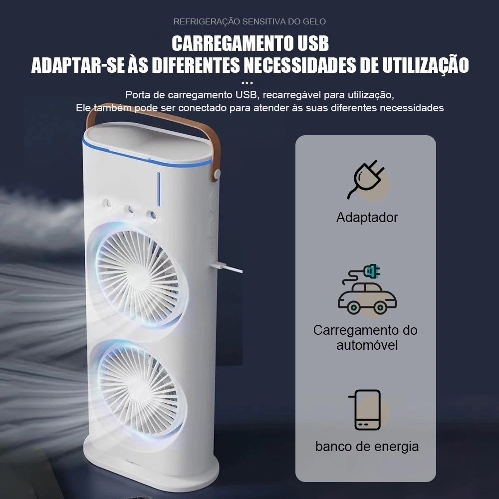 MINI Refrigerador De Ar Ventilador Umidificador Dupla Giratório+rgb Camada Ventilador Climatizador Ar C/ Reservatório