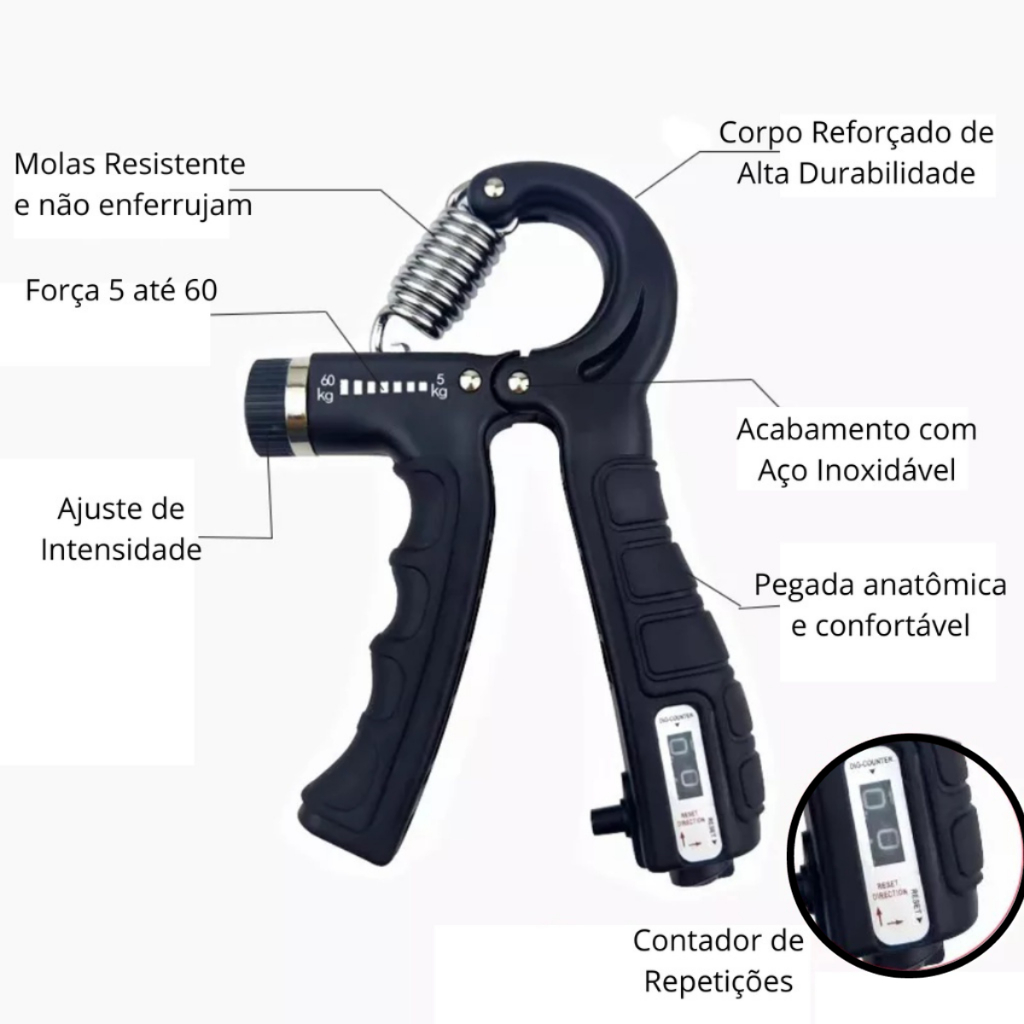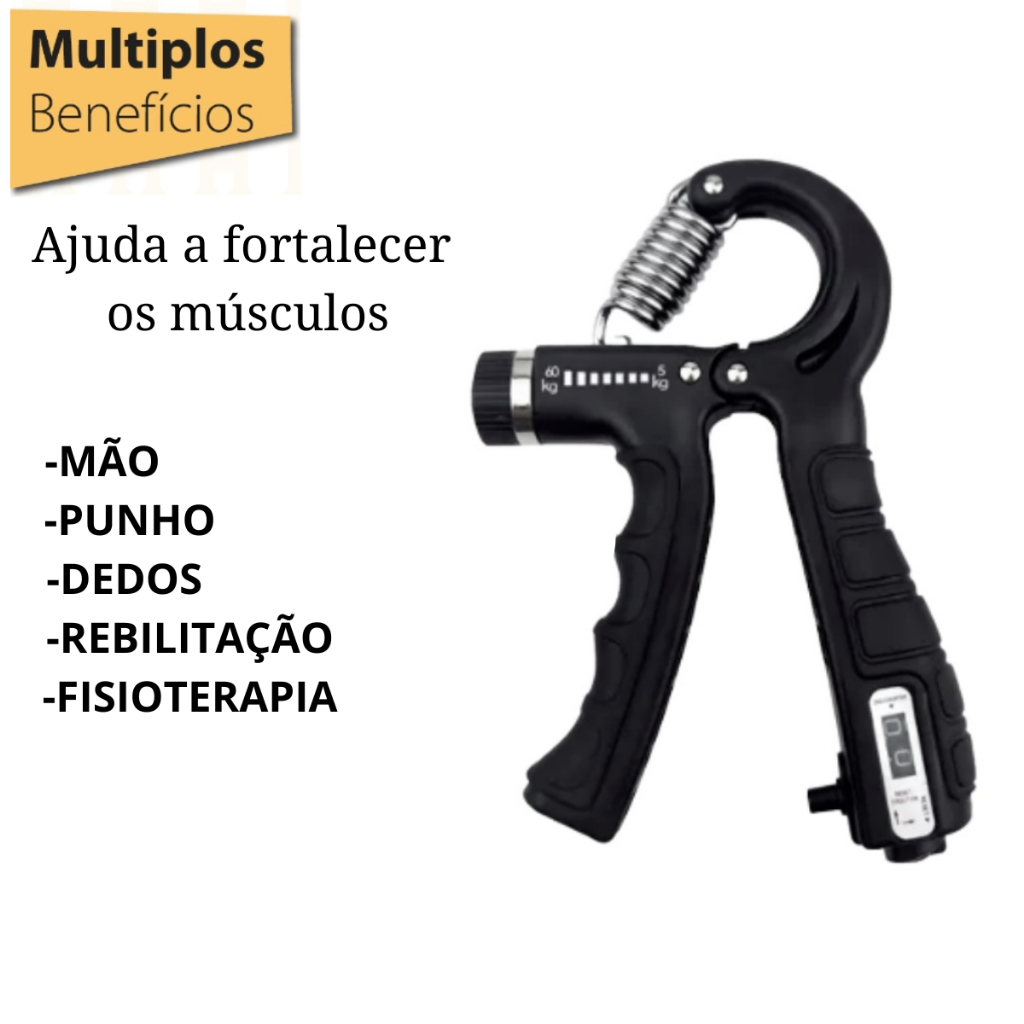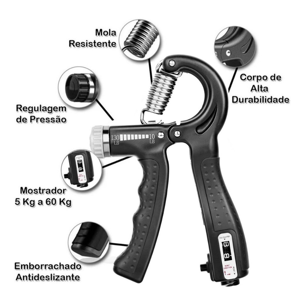 Hand Grip com Molas Ajustável 5 até 60 Kg Flexor com contador Exercício Para Mãos Punho Fisioterapia