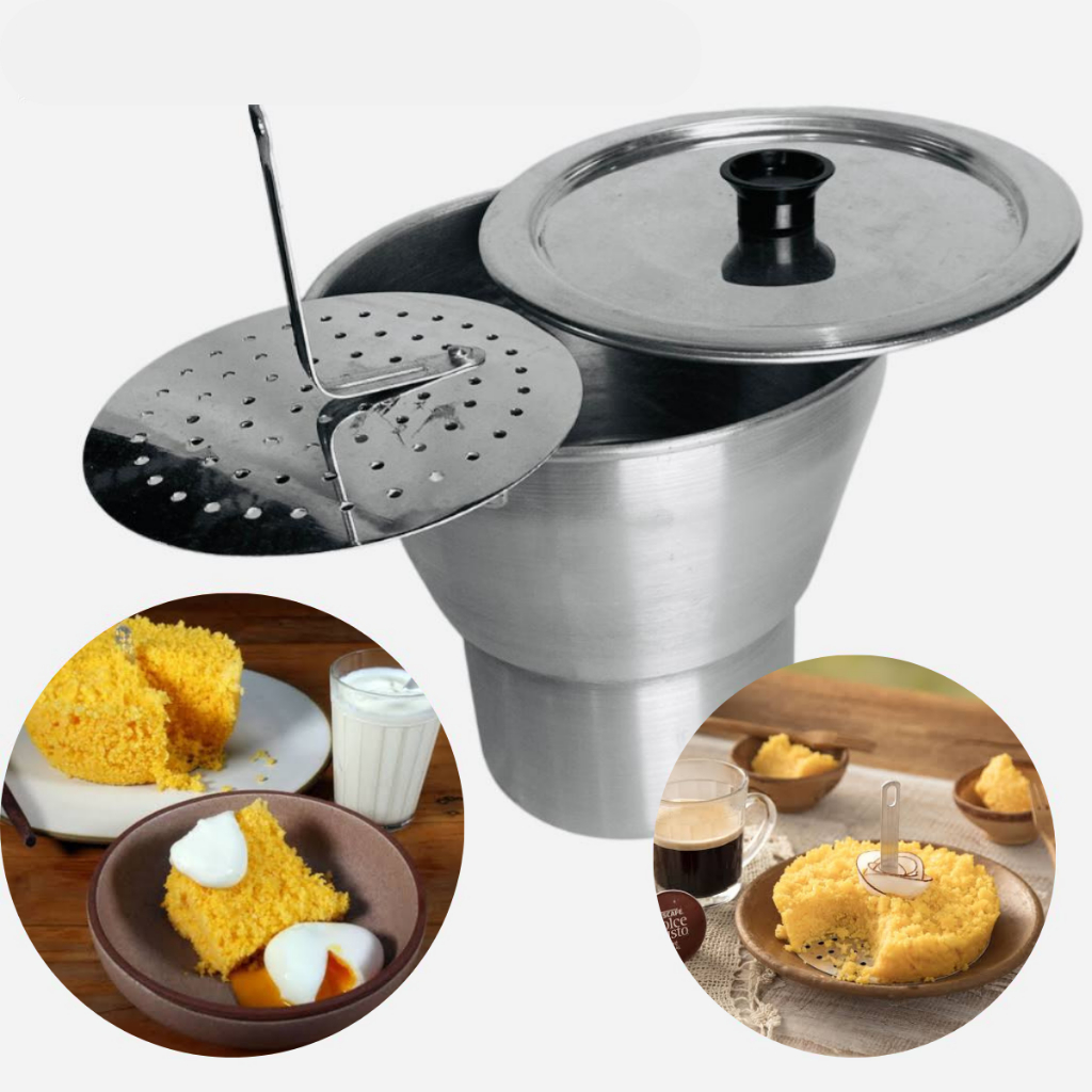 Cuscuzeira Grande Feita de Alumínio Polido Reforçado Altíssima Qualidade Panela de Cuscuzeiro Individual Faz Cuscuz nordestino Delicioso no Vapor