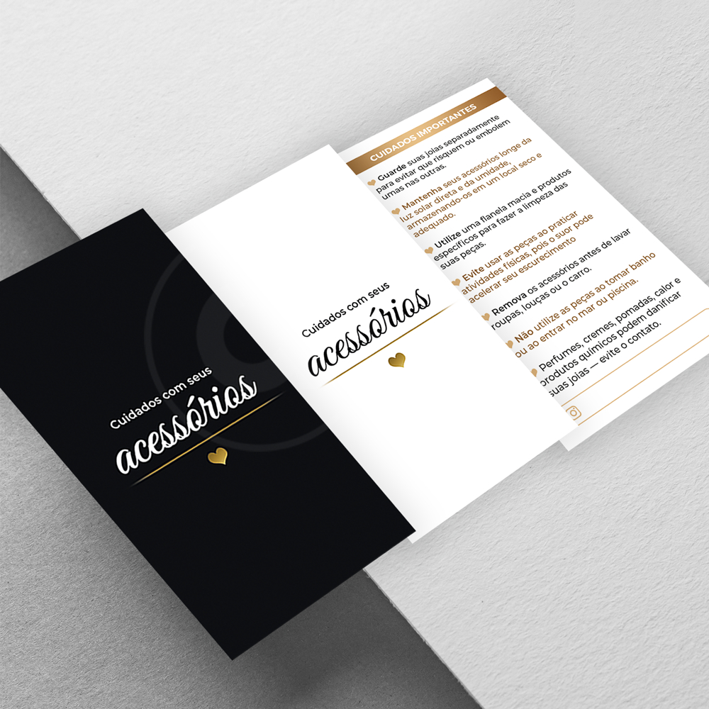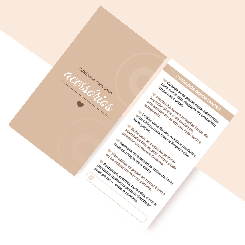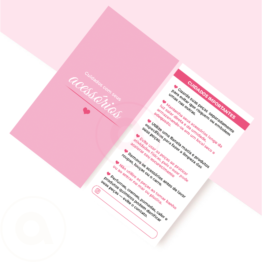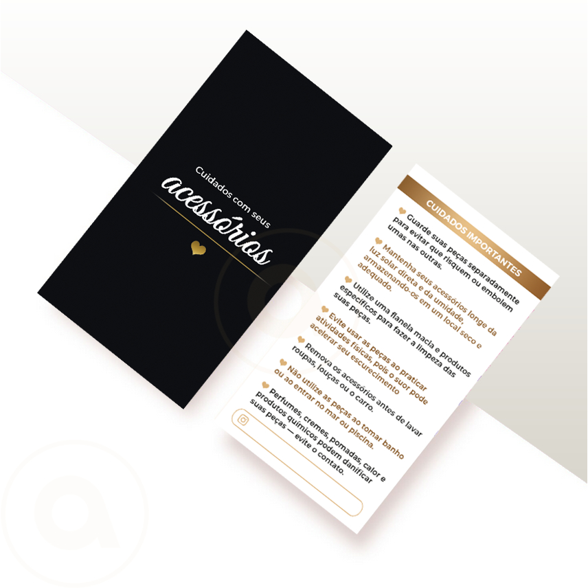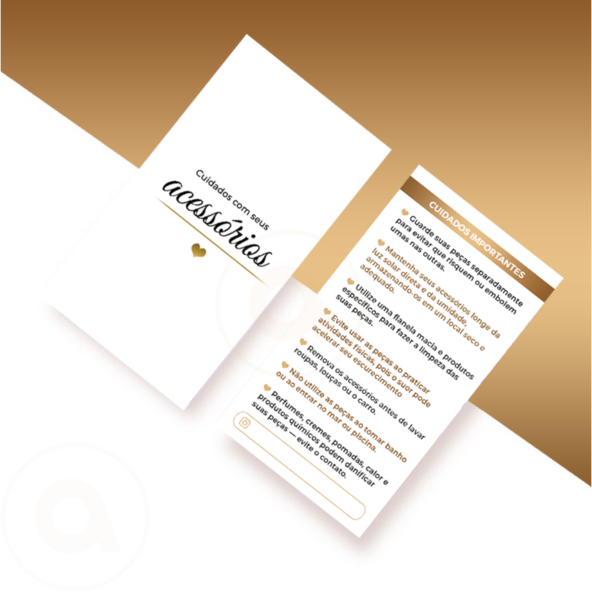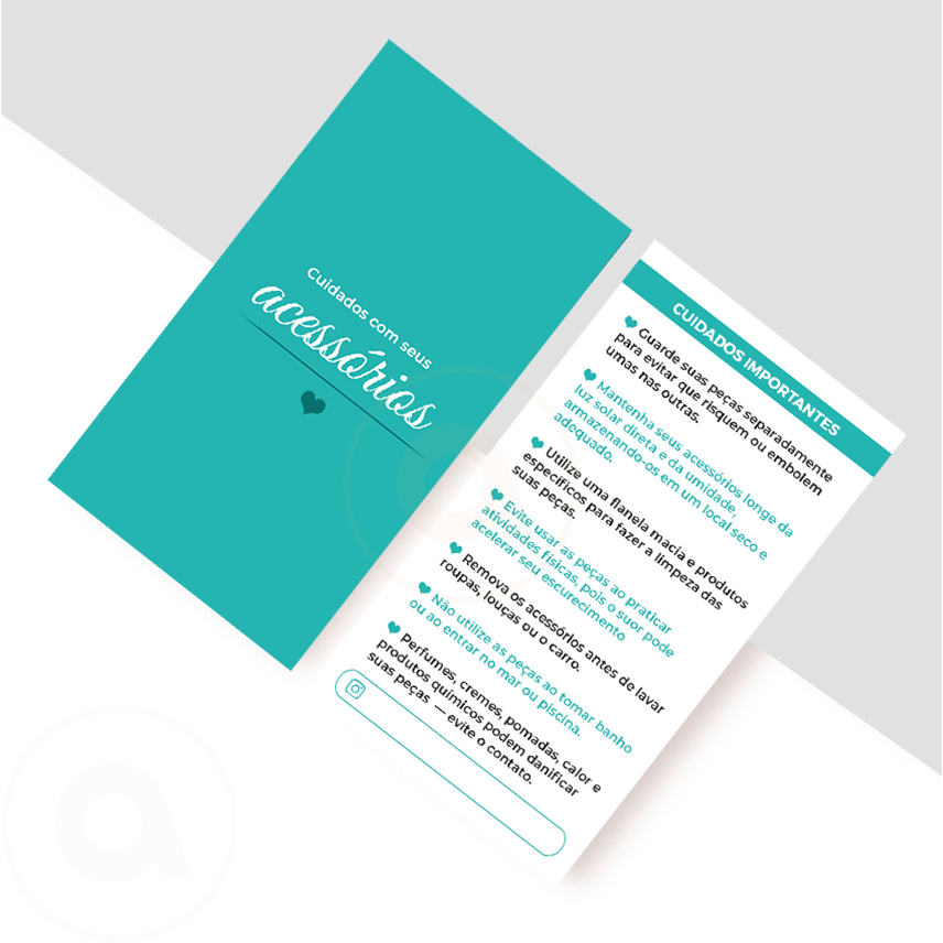 Cartão Cuidados Acessórios - Semi joias/ Bijuterias / 9x5 cm / Cores