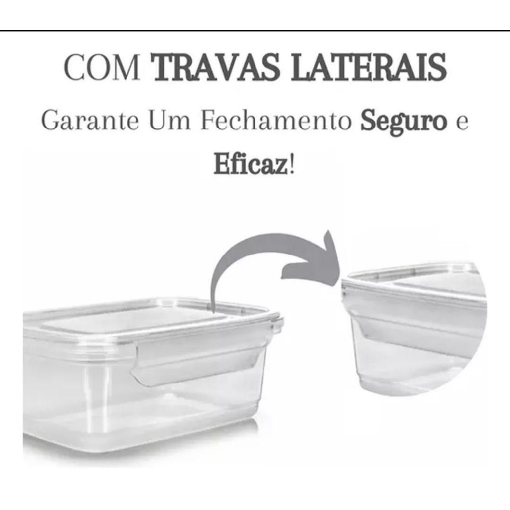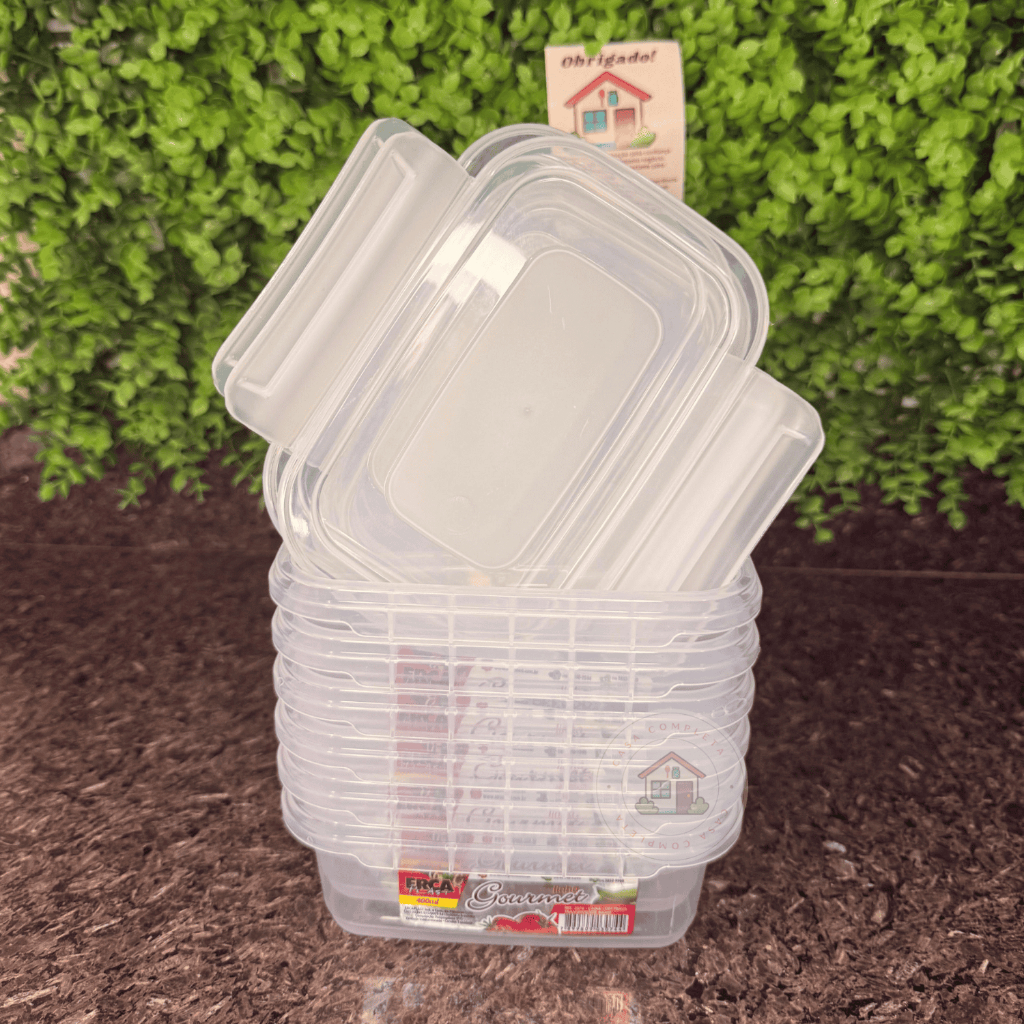 Kit com 6 Marmitas Fitness 400ml Freezer E Microondas Potes Plásticos com Trava Grande