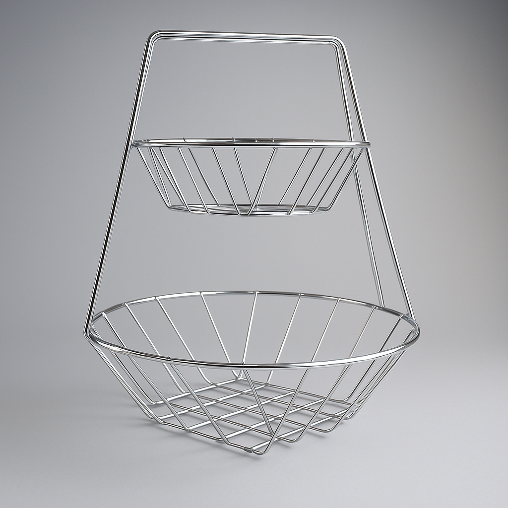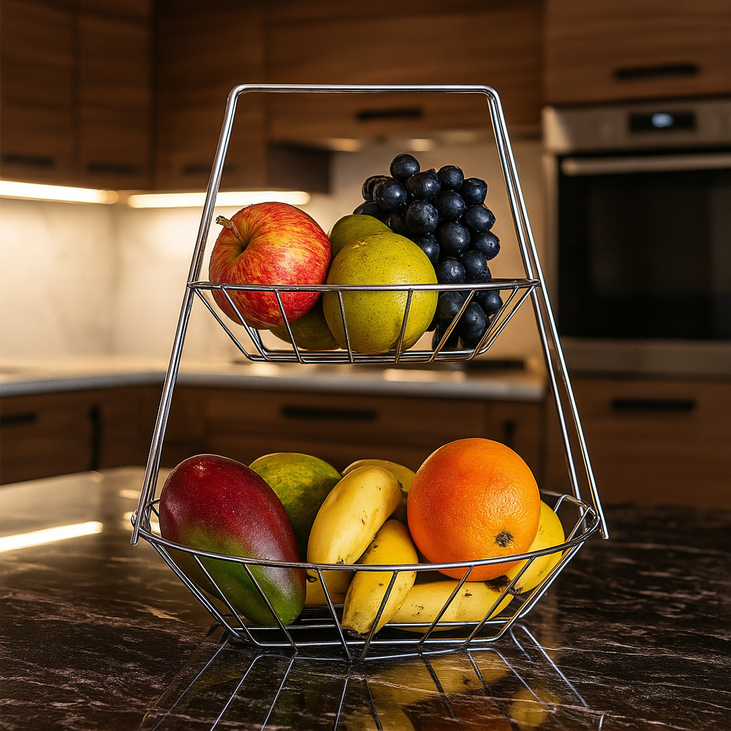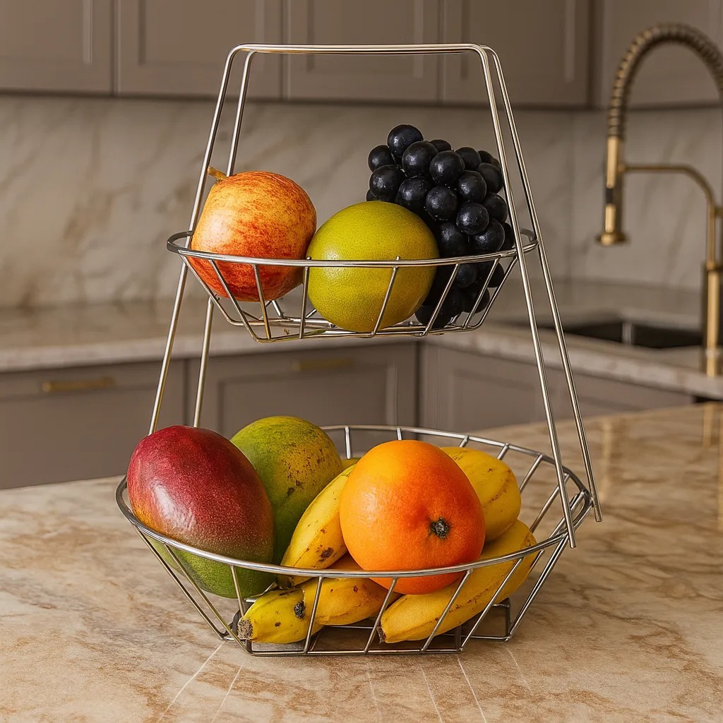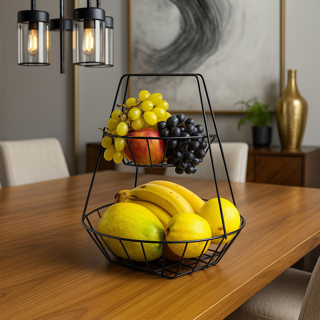 Fruteira de Mesa Dupla Redonda para Bancada 2 Andares Cestos Aramado Design Moderno de Cozinha Águia