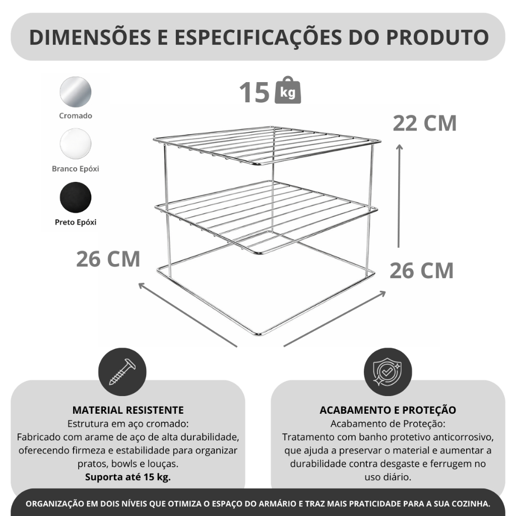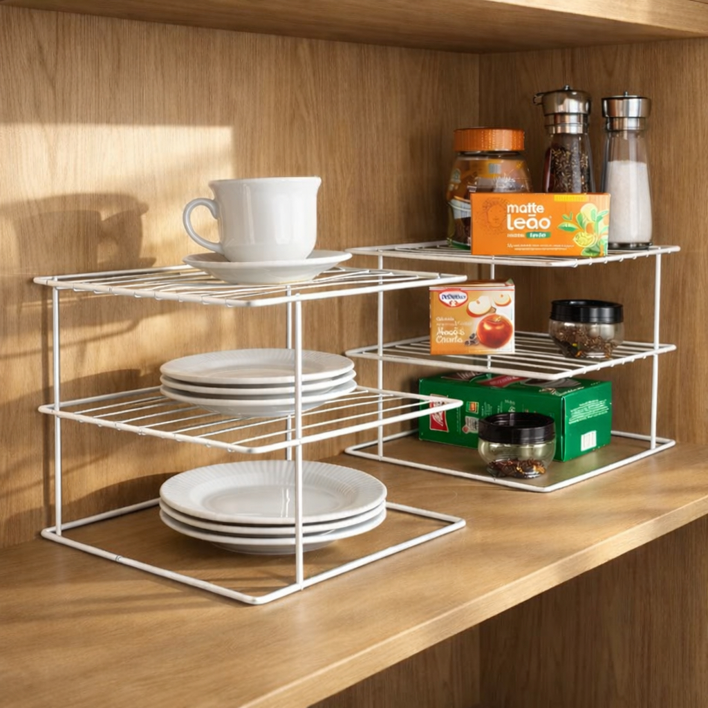 Kit 2 Suporte Organizador De Pratos Divisórias 3 Níveis Aramado para Mesa Armário Prateleira Cozinha