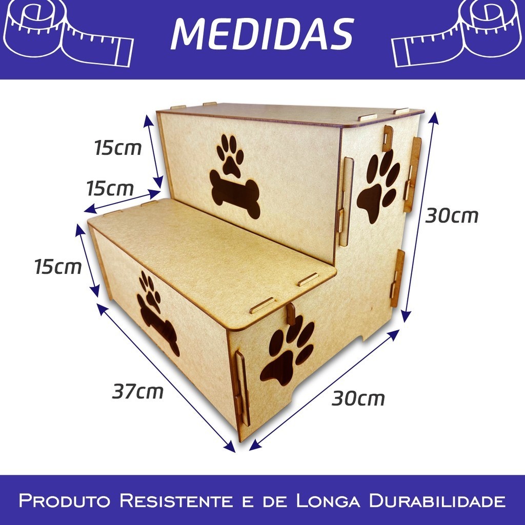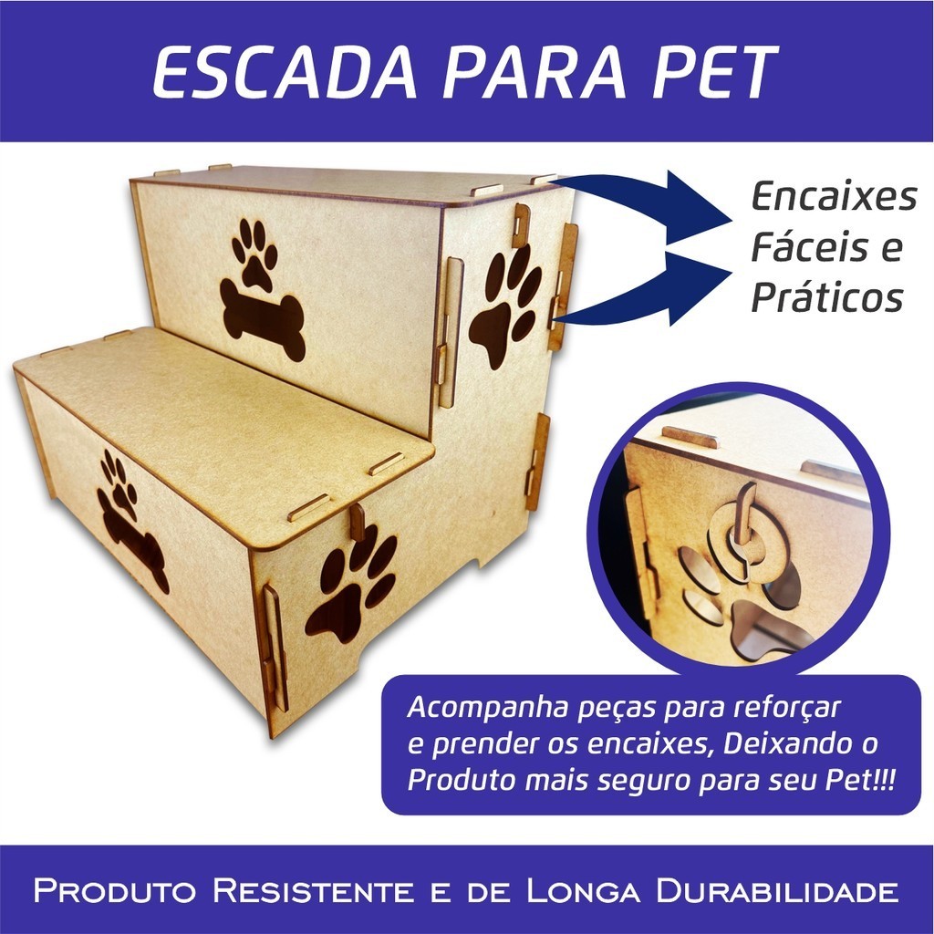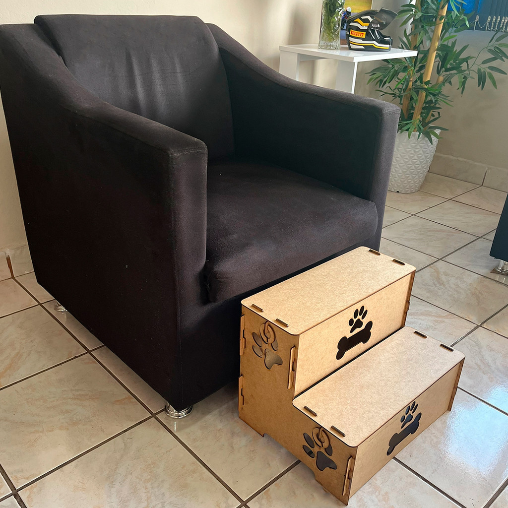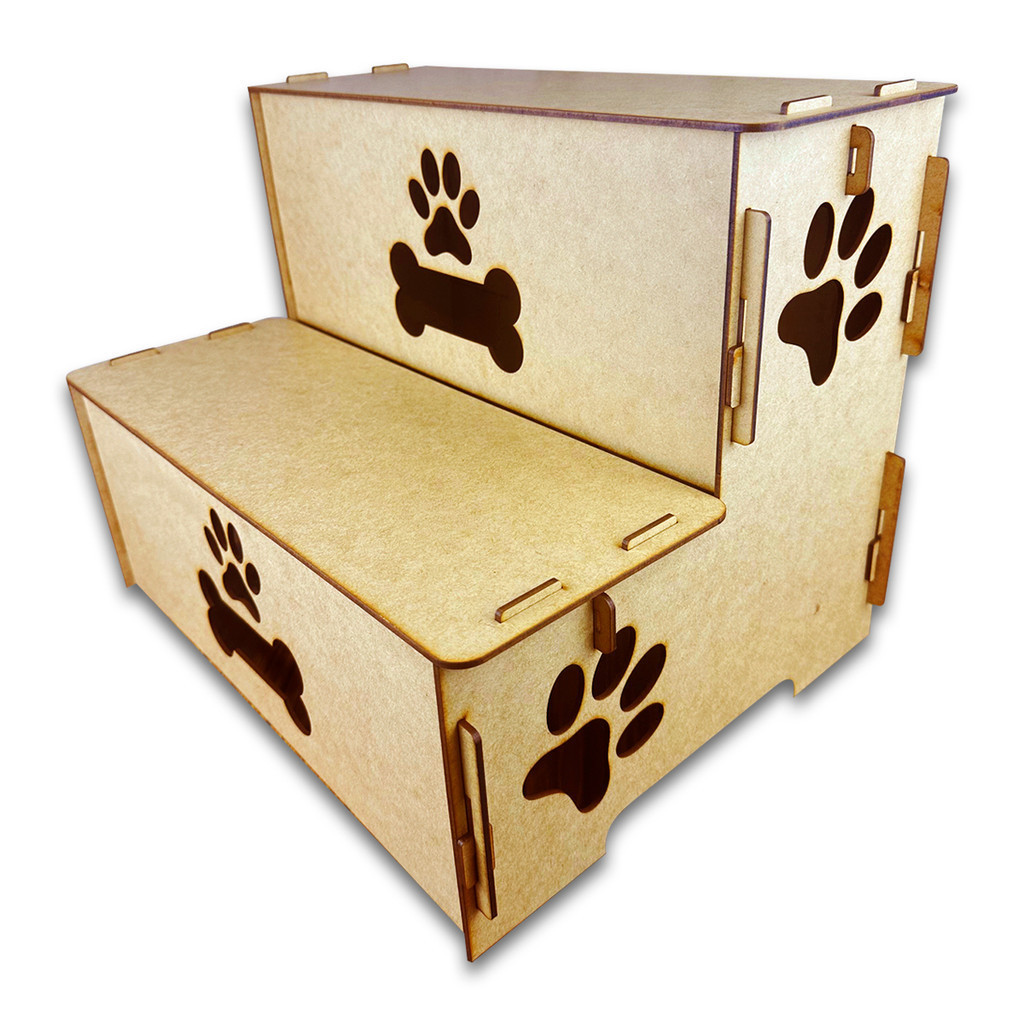 Escada Pet P/ Cama Madeira 2 Degraus P/ Cachorro E Gato 30cm