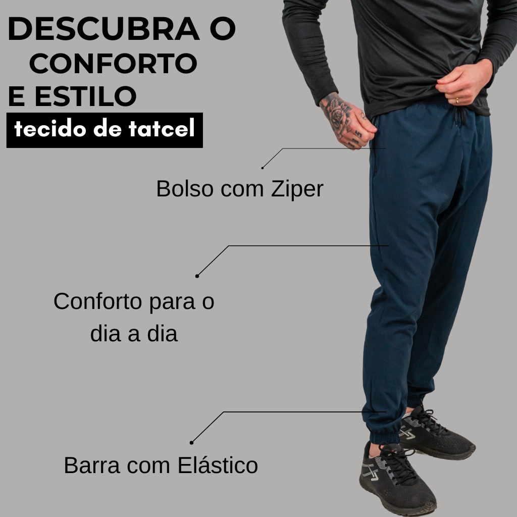 Calça Tectel Esportiva Masculina Jogger Bolso com Zíper Confortável Casual Academia
