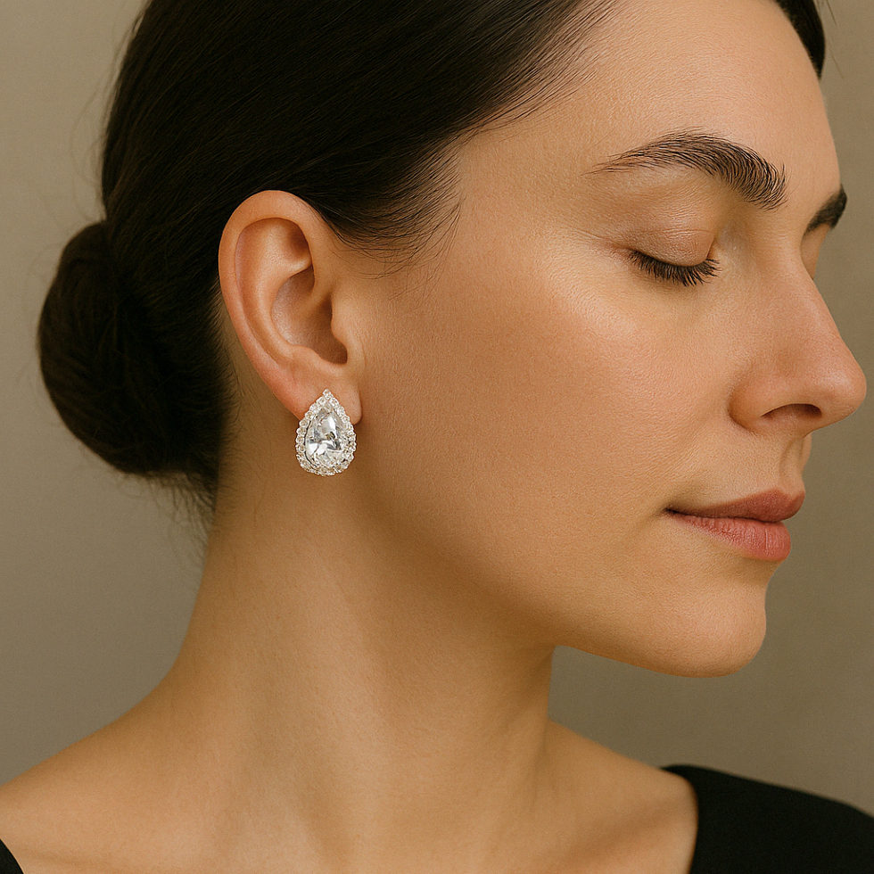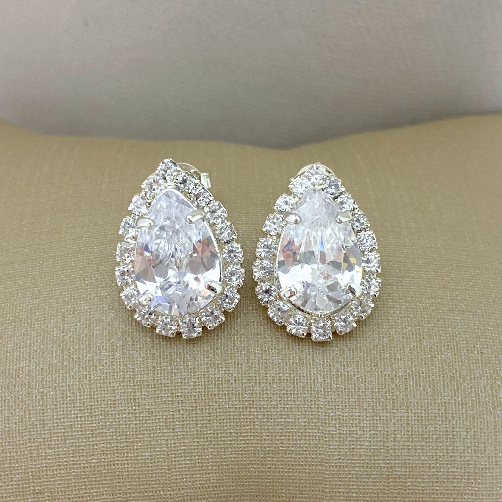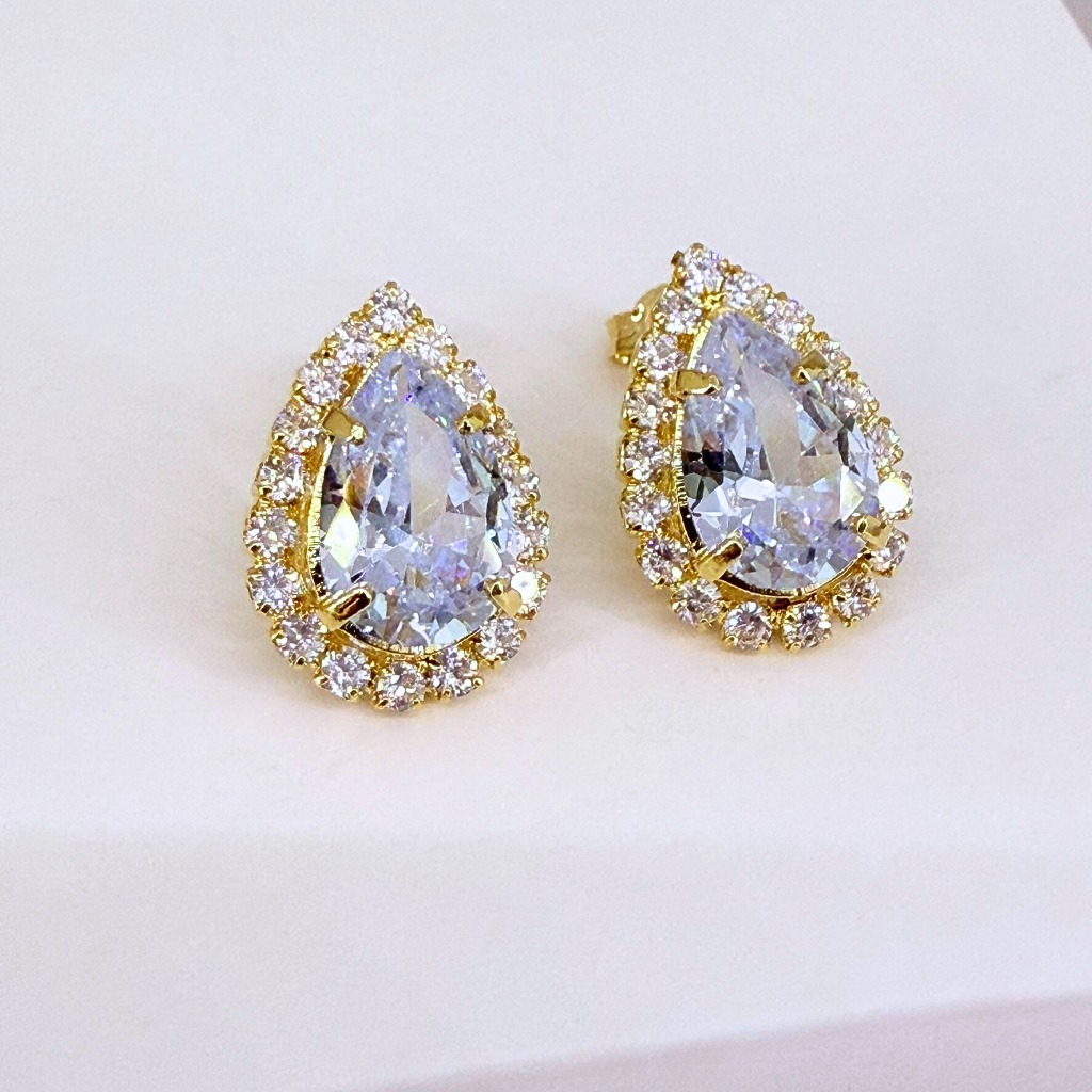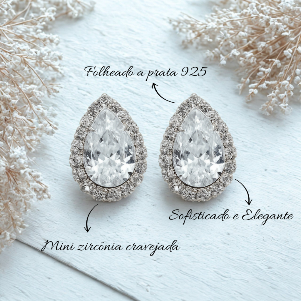 BRINCO FEMININO GOTA PEDRA ZIRCÔNIA CRISTAL BANHO PRATA E OURO