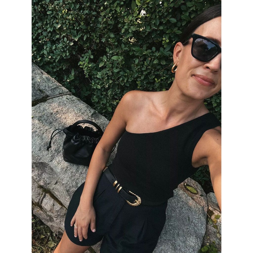 Blusa Feminina Uma Manga Ribana Canelada Cropped Forro Duplo Tendência