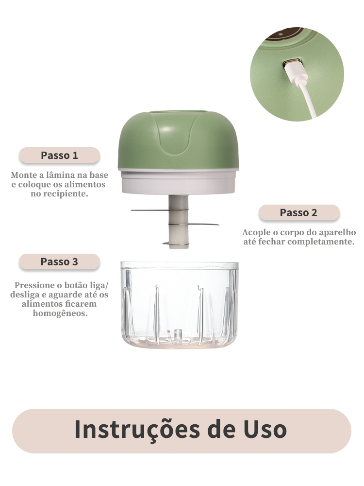 Mini Processador Elétrico Moedor Carne Vegetais Alho Fruta Amendoim RecarregávelGengibre Legumes AlimentosMoedor de Alho