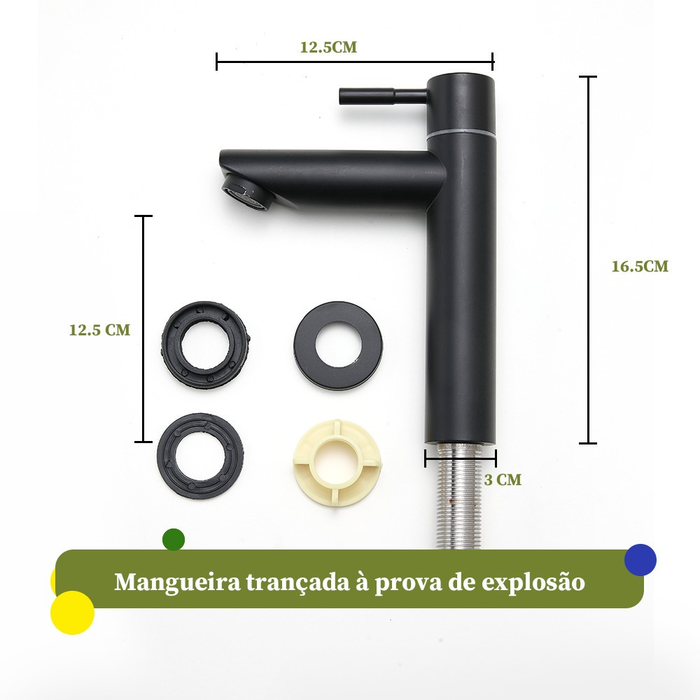 Heemli Torneira para Pia Preta Fosca – Corpo Inox, Água Fria, Durável, Economia de Água