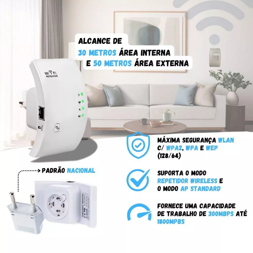 Repetidor Amplificador De Sinal Wifi 300/mbps Ultra Rápido sinal forte Botão WPS 1 Toque Cobertura Estável Consumo Apena