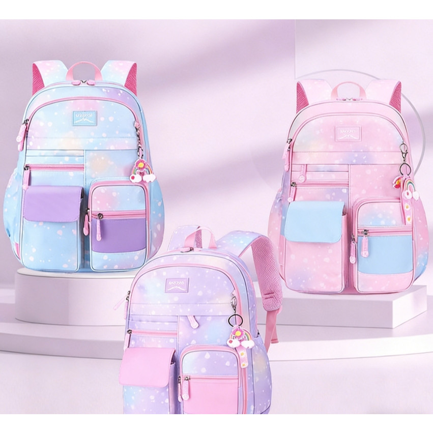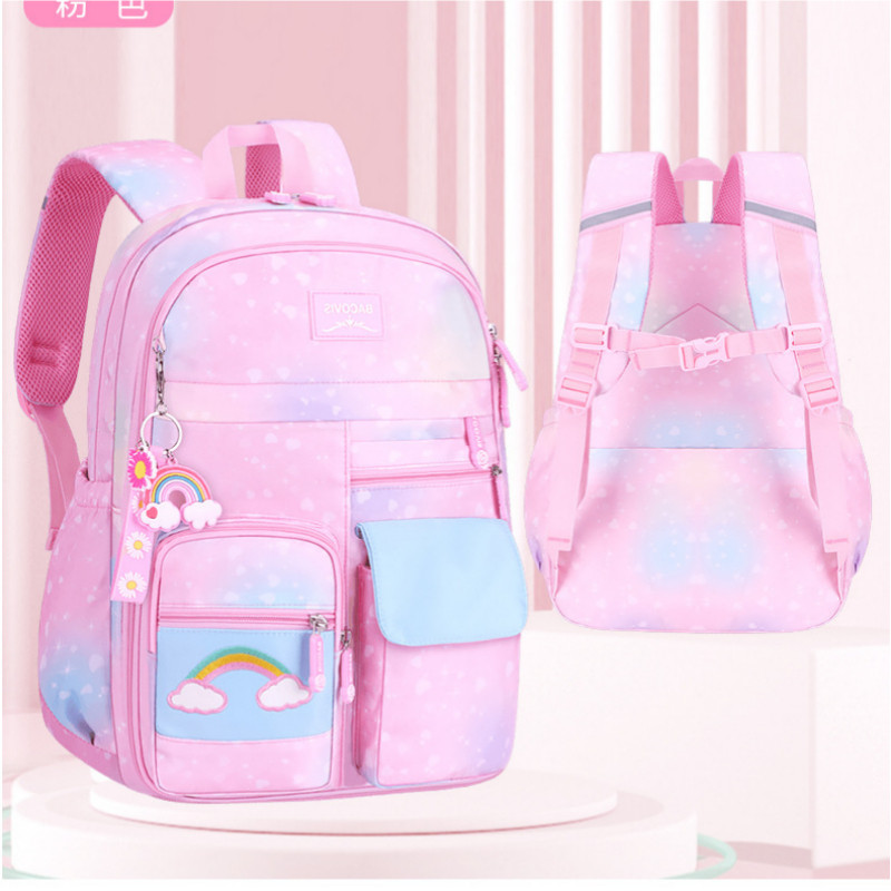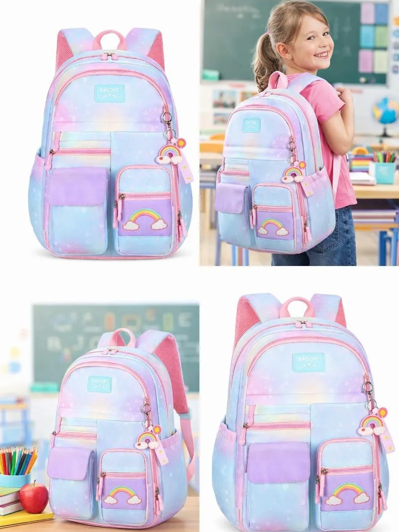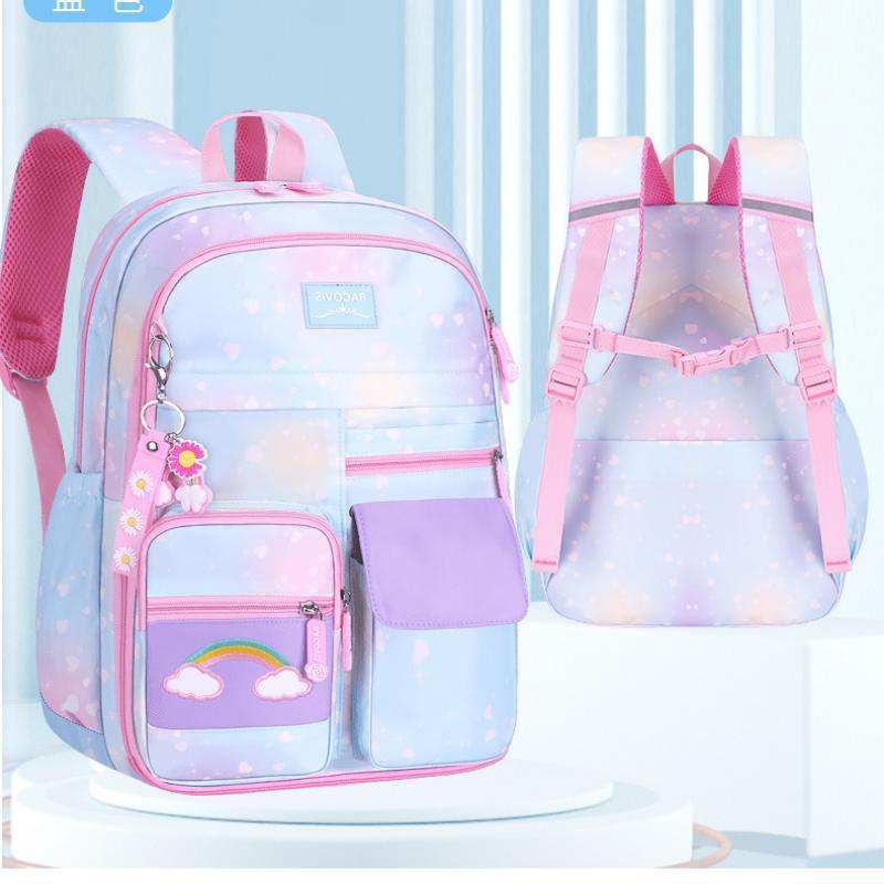 Mochila Escolar Infantil Impermeável com Alça Ergonômica e Múltiplos Bolsos – Rosa Roxa Azul