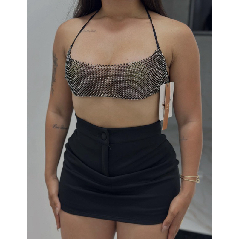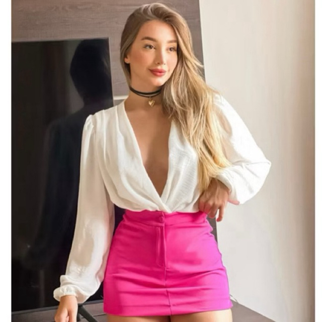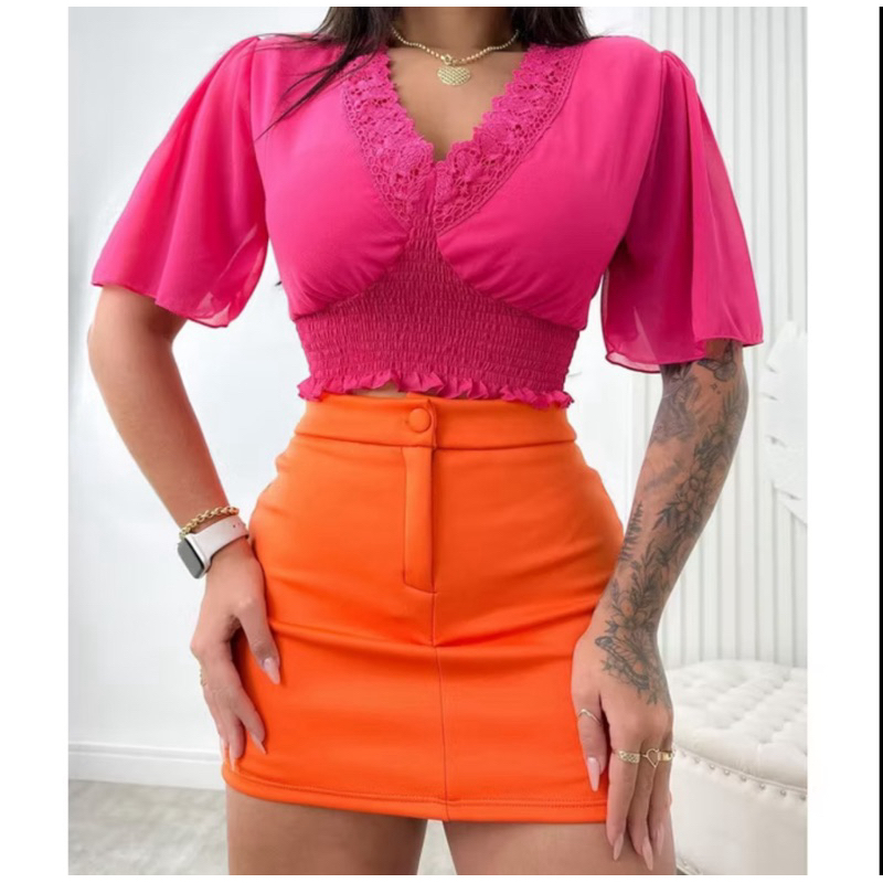 Short Saia Alfaiataria Com Cintura Alta Com Botão encapado Tendência verão 2026 Neoprene elegante
