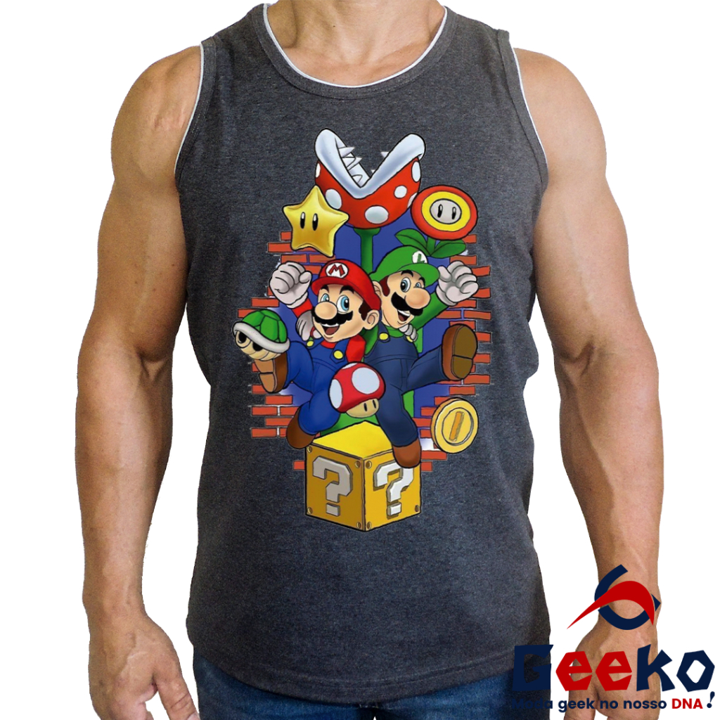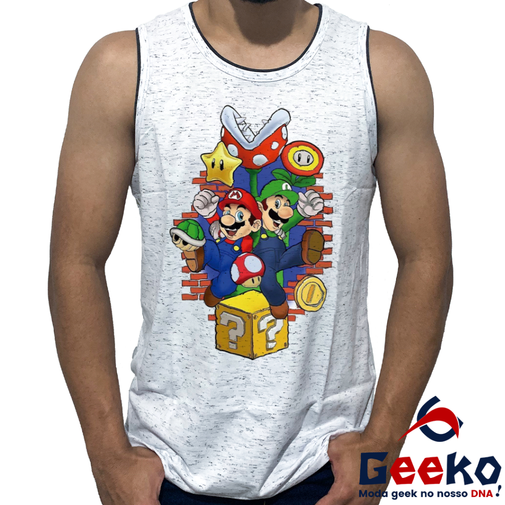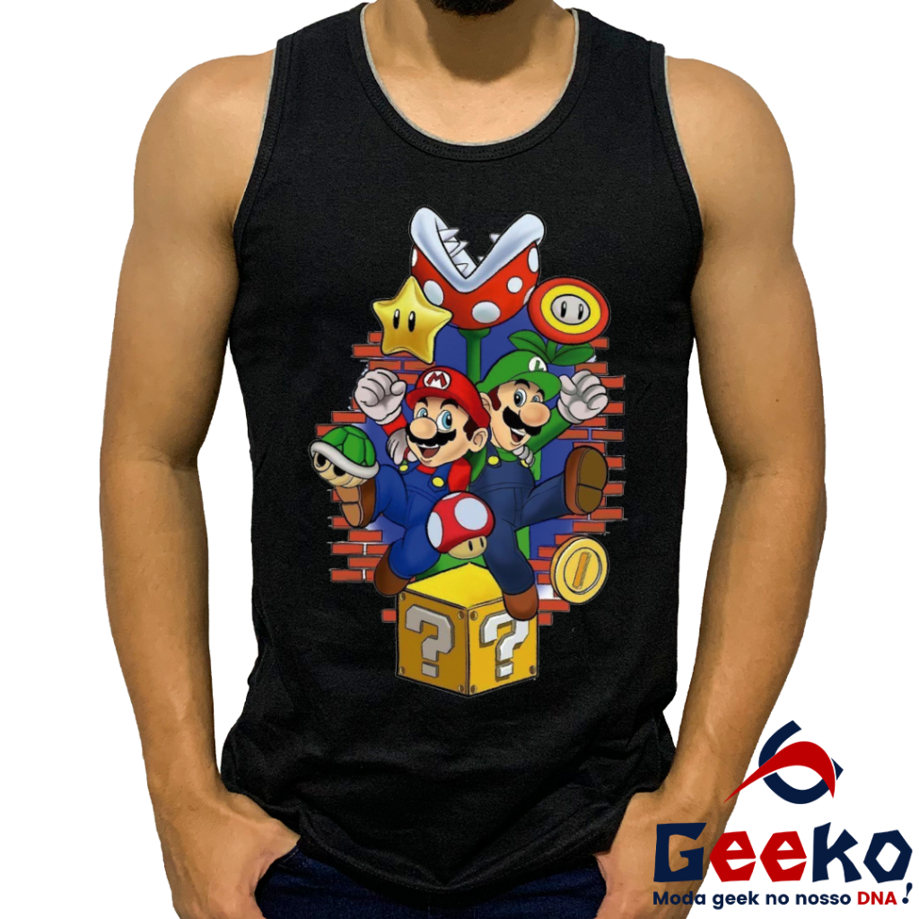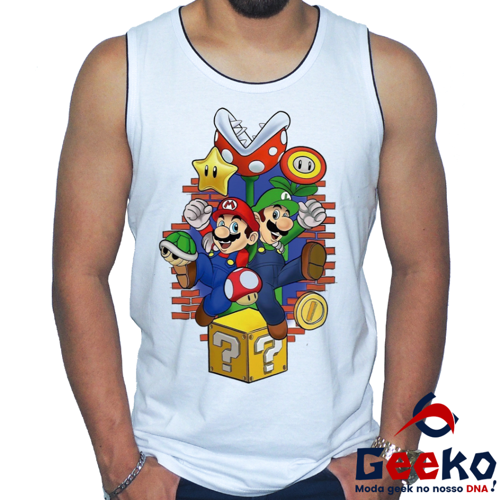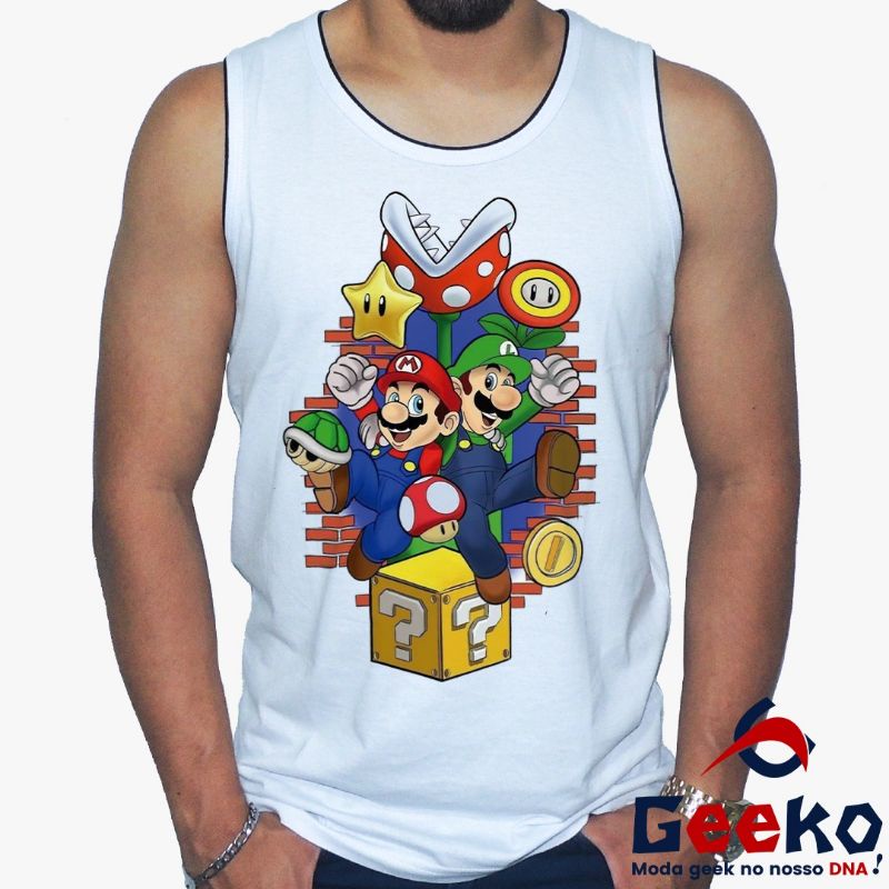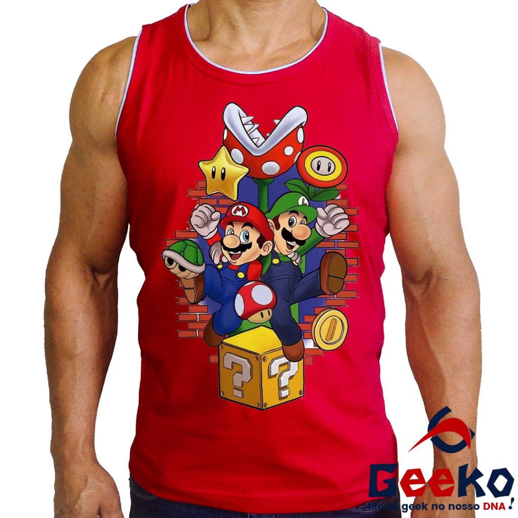 Regata Mario e Luigi 100% Algodão - Mario Bros - Camiseta Regata Geeko