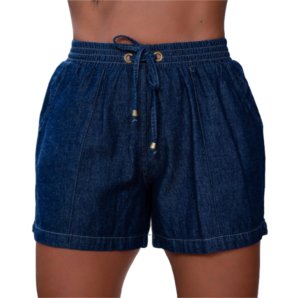Short Feminino Jeans Casual Com Elástico Cintura Alta Conforto Estilo Ajuste Perfeito