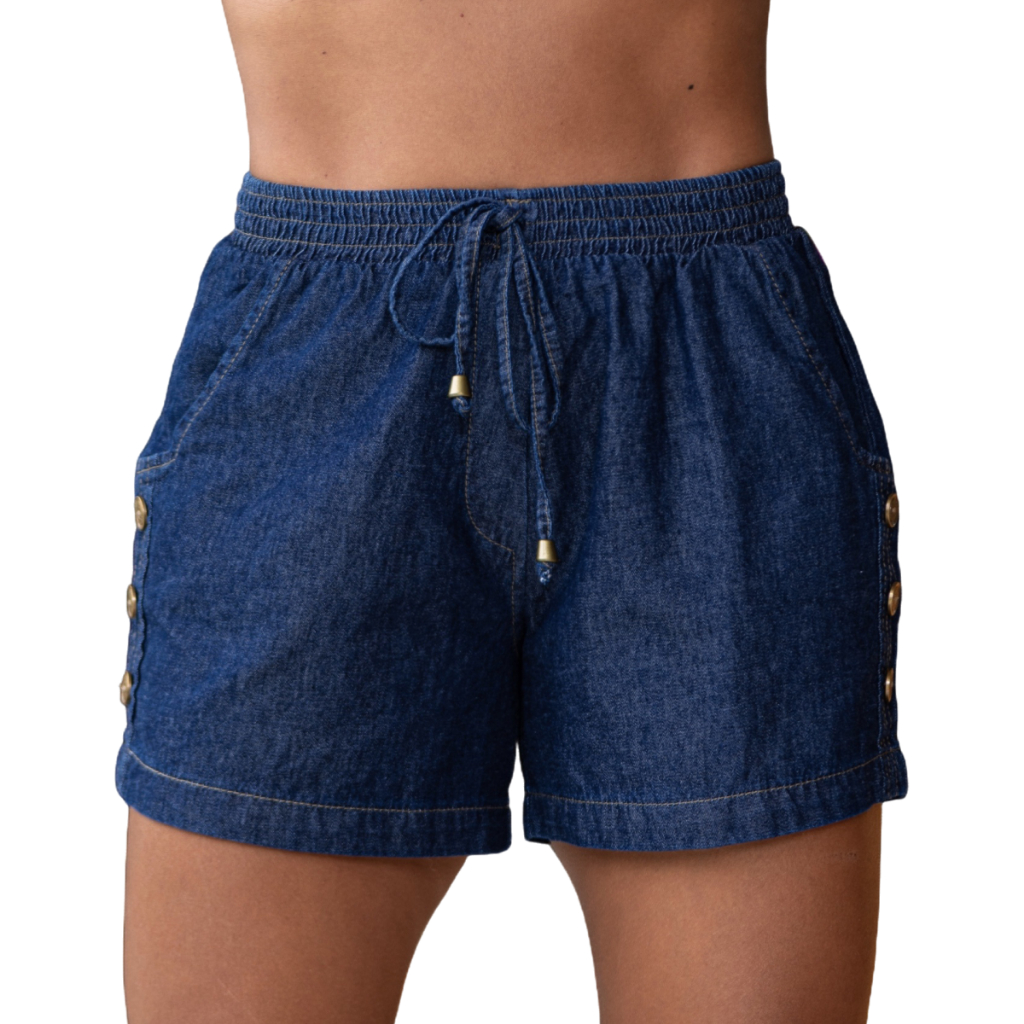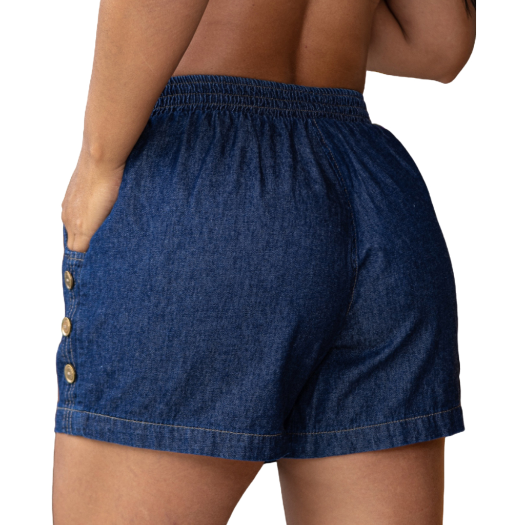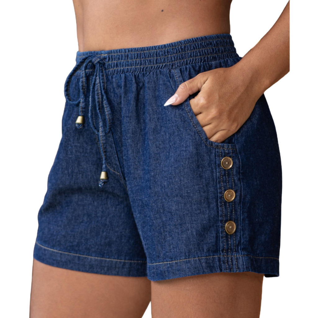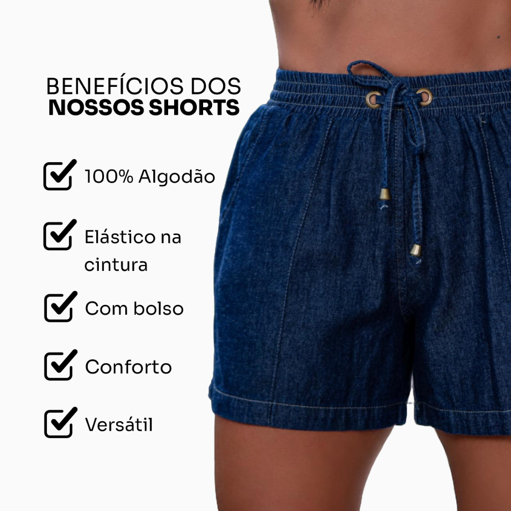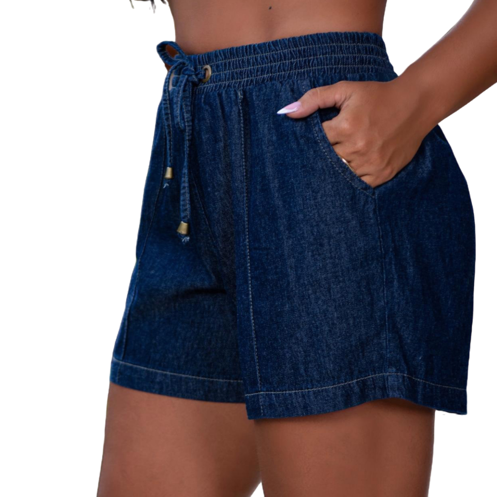 Bermuda Jeans Feminino Cintura Alta Com Elástico Confortável 100% Algodão