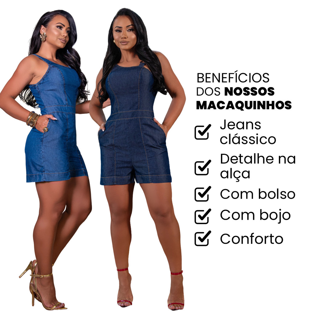 Macaquinho Jeans Curto Feminino com Bojo Zíper Frontal e Bolsos Look Casual Estiloso