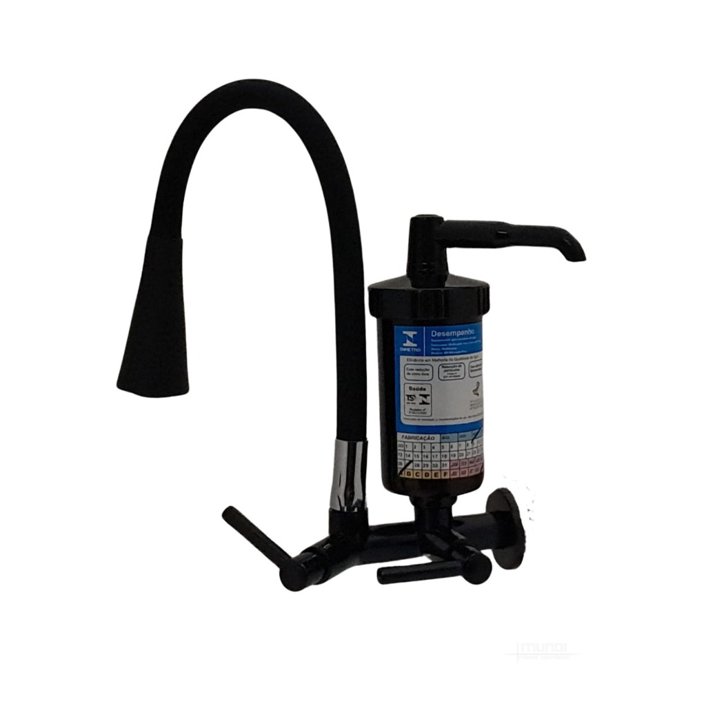 7161 Torneira Gourmet Preta Bica Móvel Parede CozinhaTubo Flexível Cone Max Com Filtro Pró Saúde