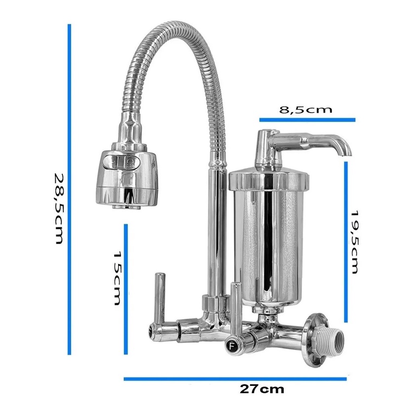 2161 C80 Torneira Gourmet Bica Móvel Cromada Tubo Flexível Parede Cozinha Com Filtro Pró Saúde