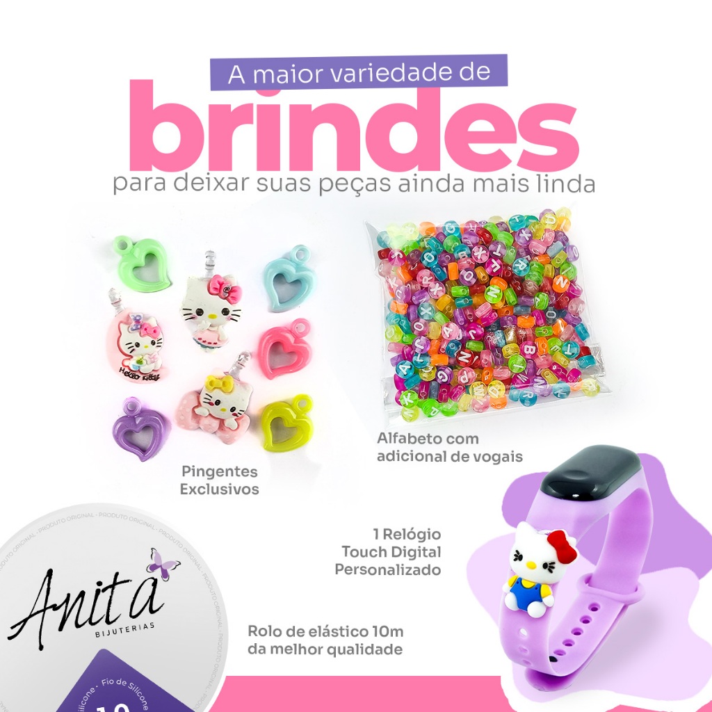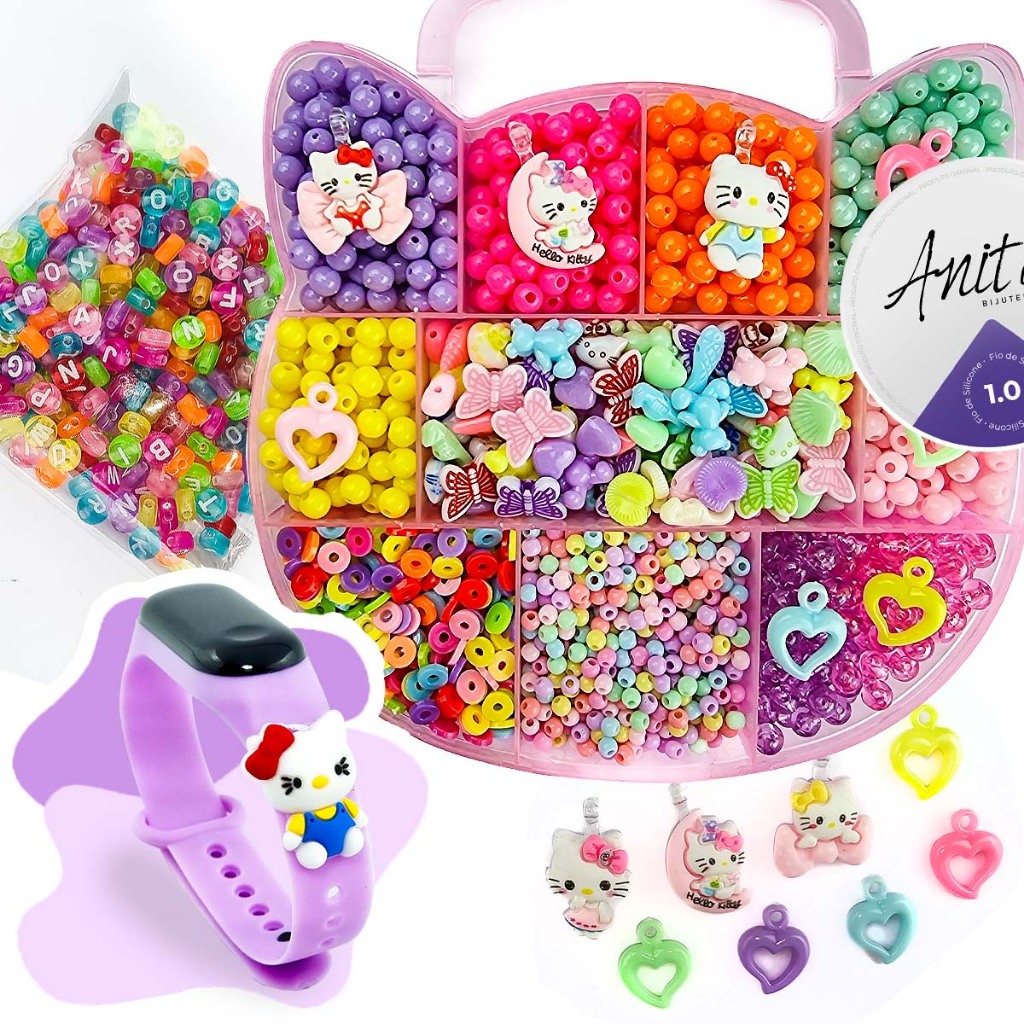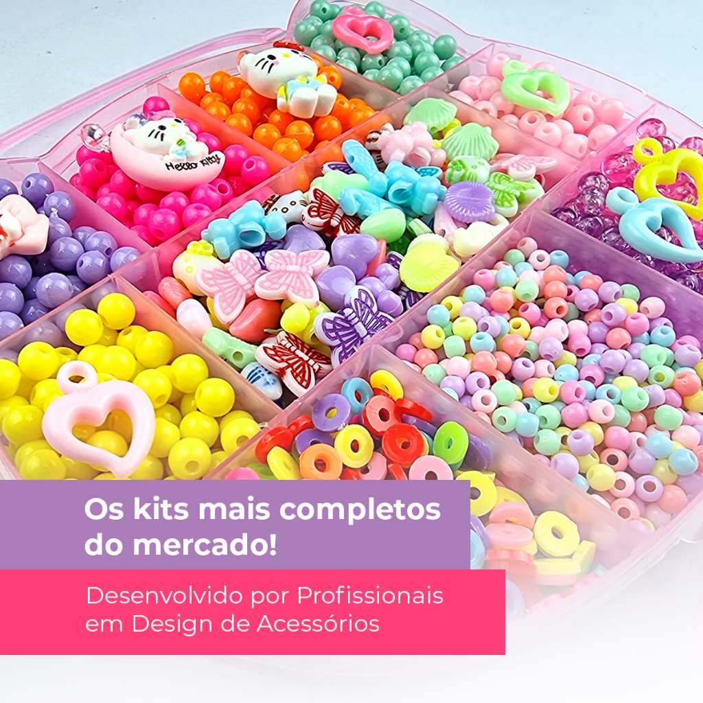 Kit Miçanga Para Pulseira Infantil Gata 1.800 Peças Kit Para Fazer Pulseiras Miçangas Pingentes Gata Pet