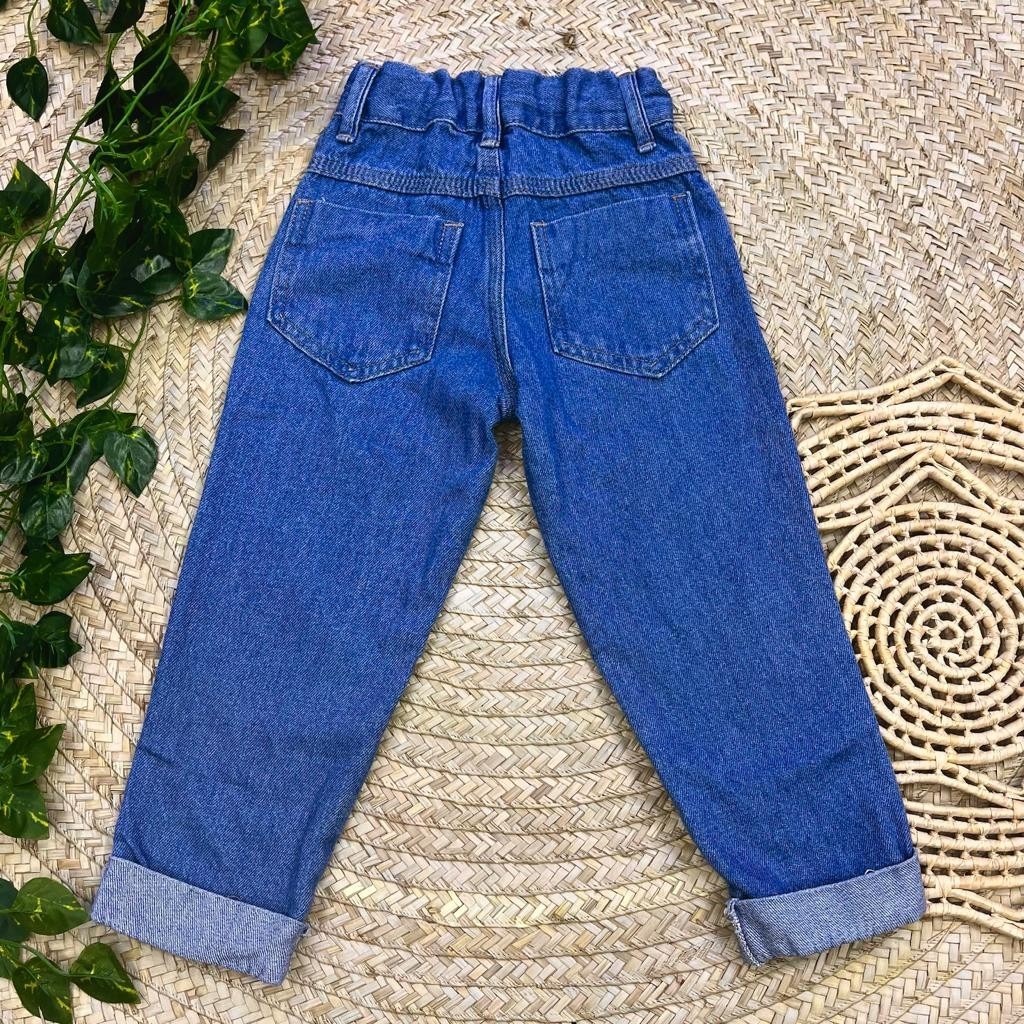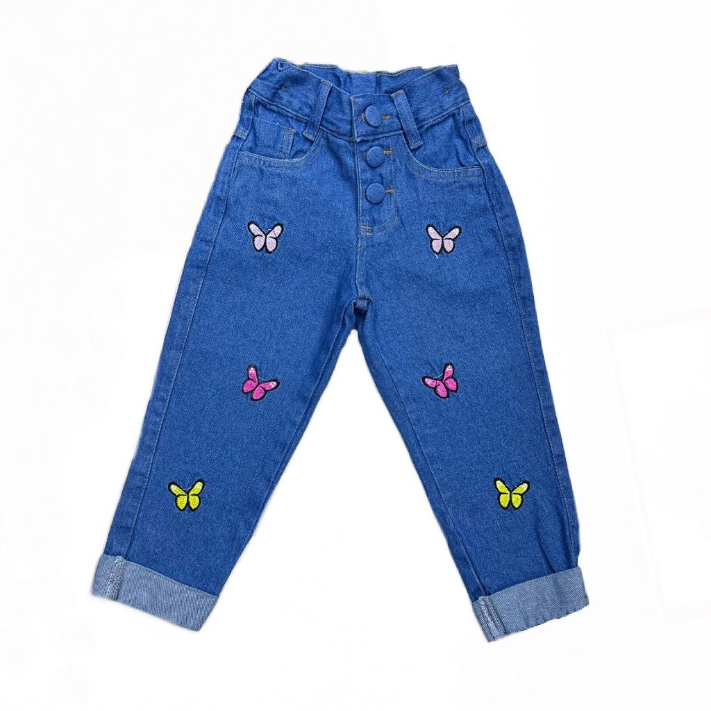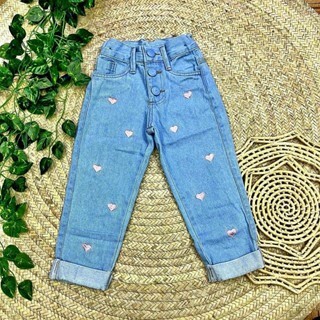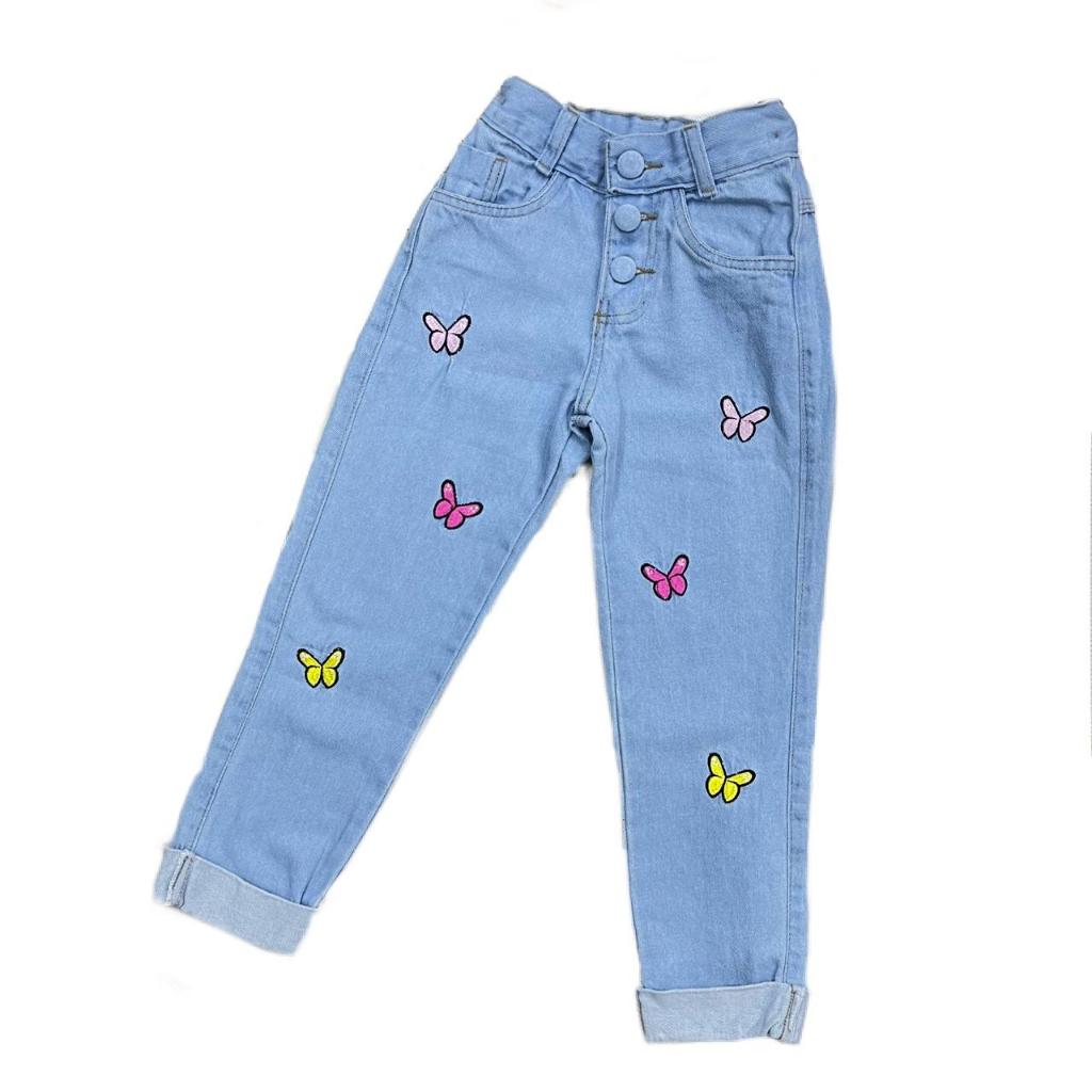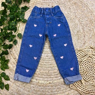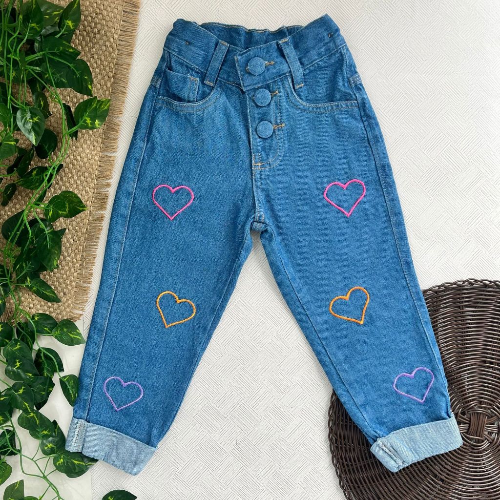 Calça Jeans Premium Infanto Juvenil Barra Dobrada e Detalhes Coração e Borboleta Tendencia Fashion