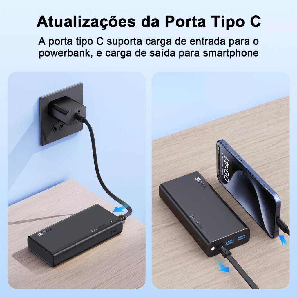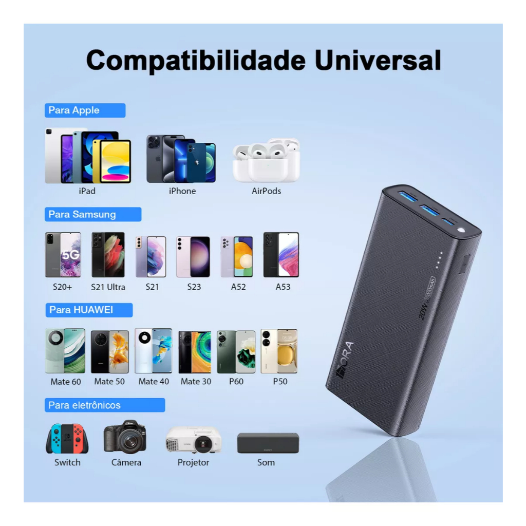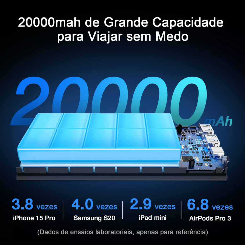 Power Bank 20000mah Carregador Portátil Super Rápido 20w 1hora Carregador De Celular 2 Portas Usb