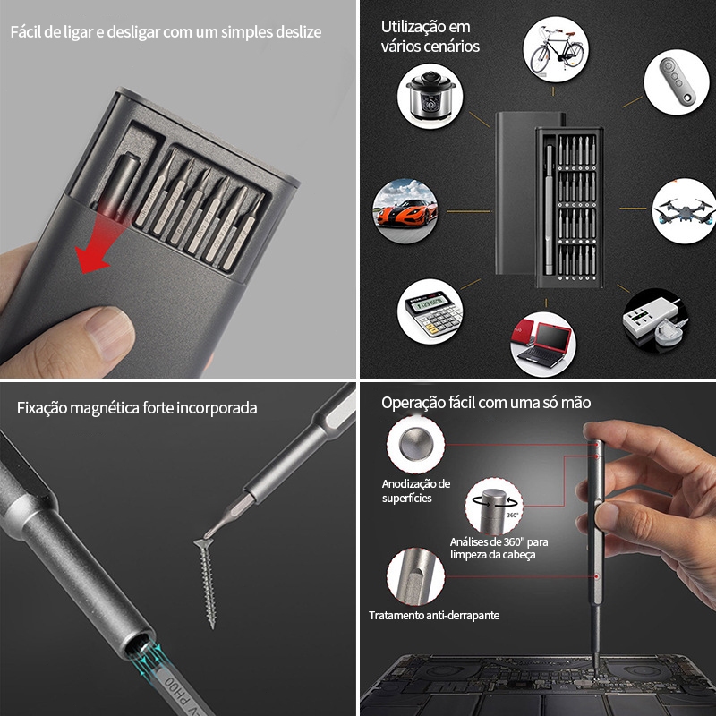 Chave de fenda manual 25 em 1 com cabeça de sucção magnética Ferramenta de reparo Cortador 25 em 1