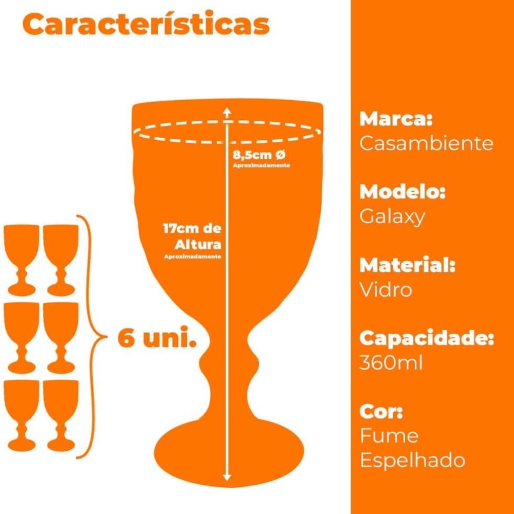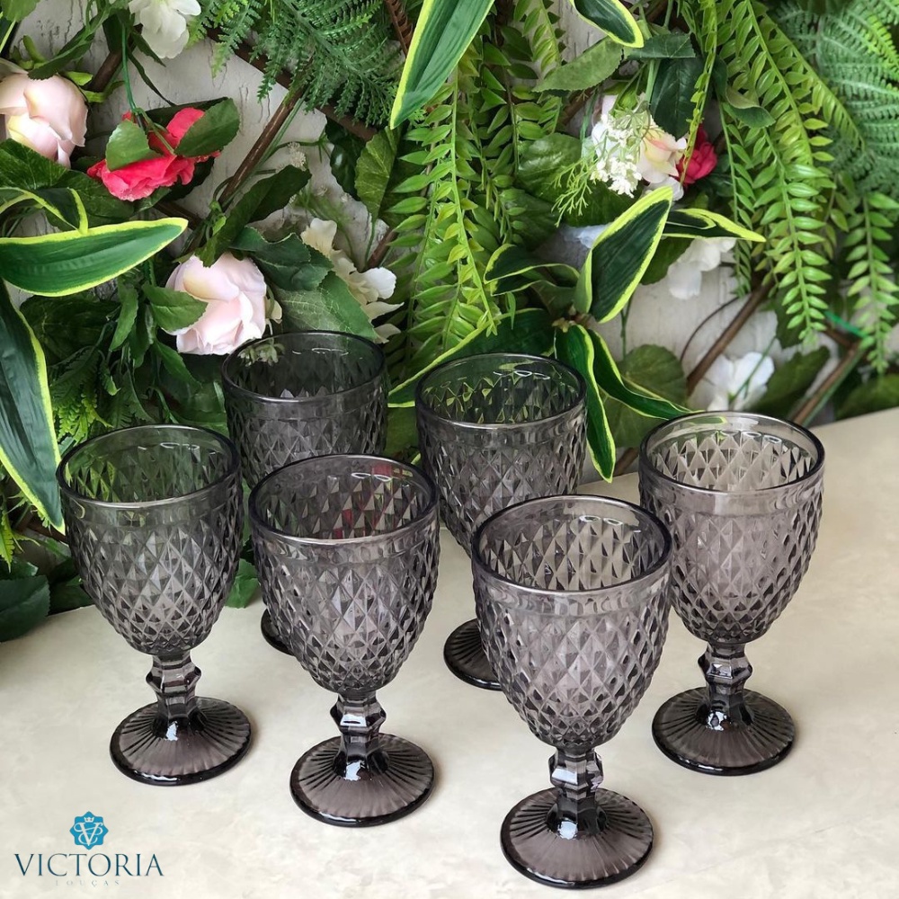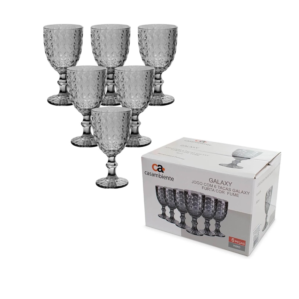 Conjunto de 6 Taças Água Suco Vinho 360ml Fume