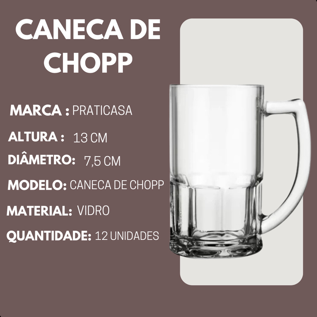 Kit 12 Canecas de Chopp Cerveja 320ml Vidro Resistente
