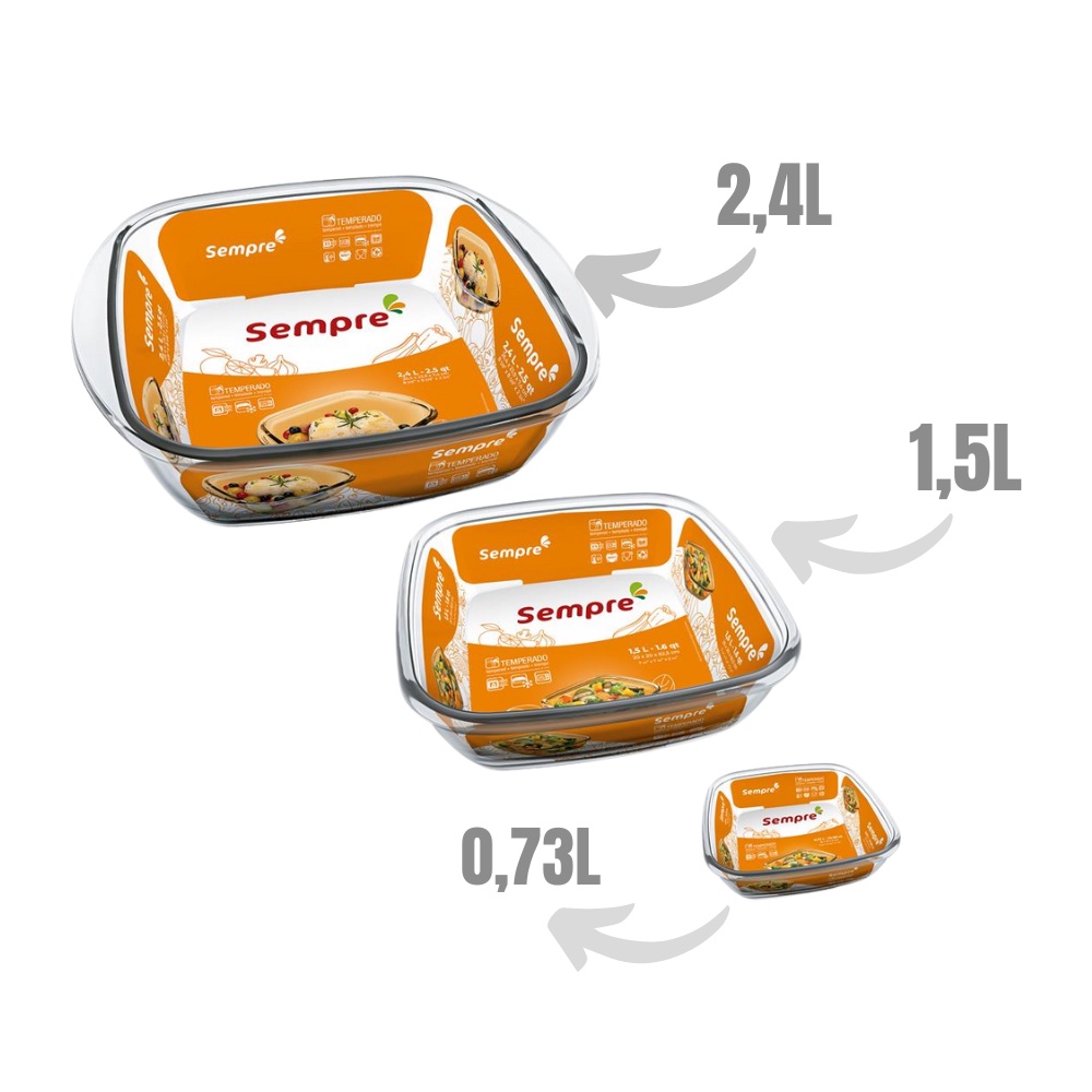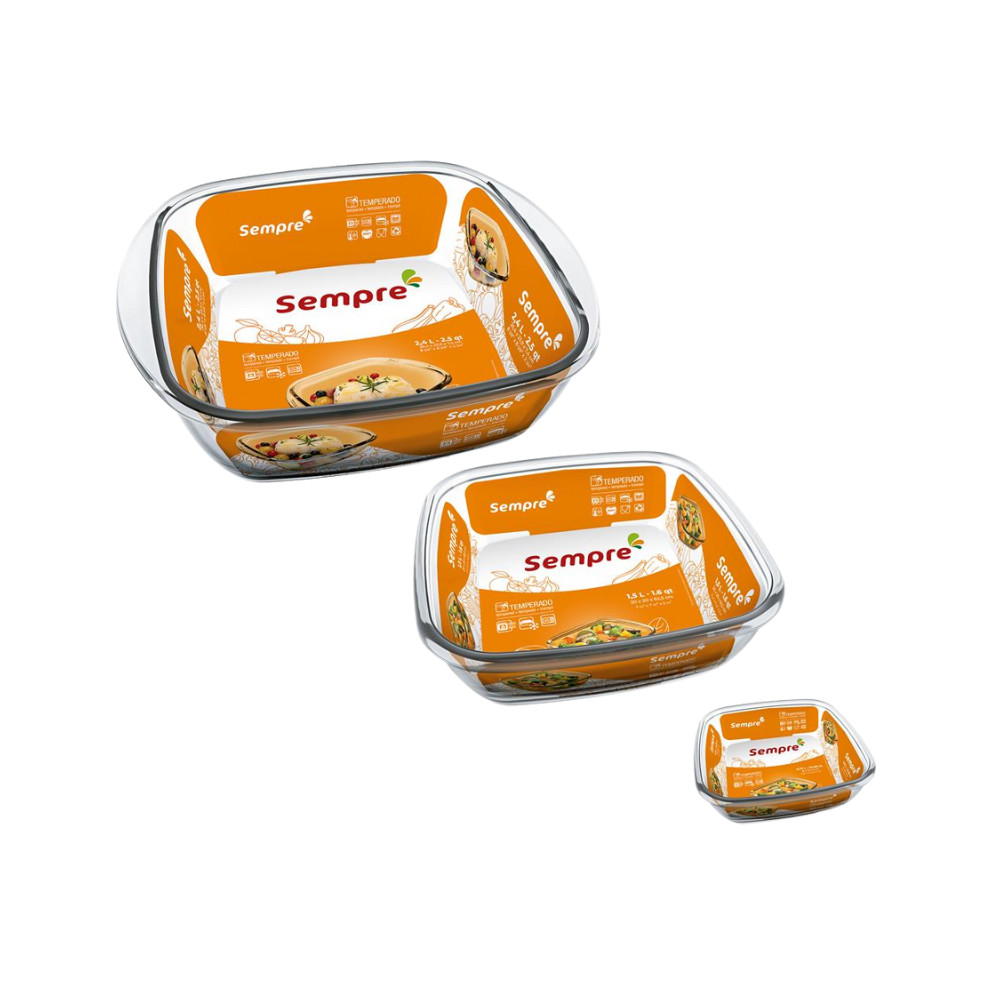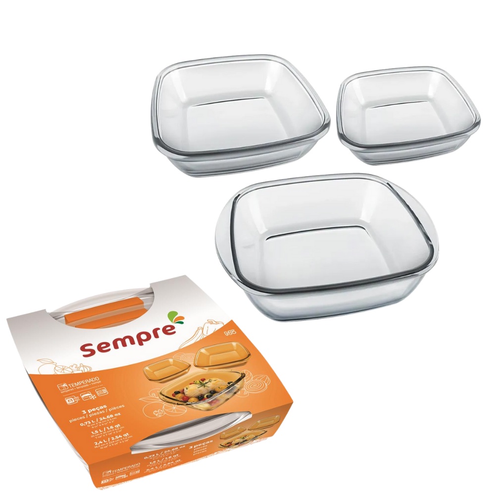 Jogo 3 Travessas Assadeiras Quadradas Nadir