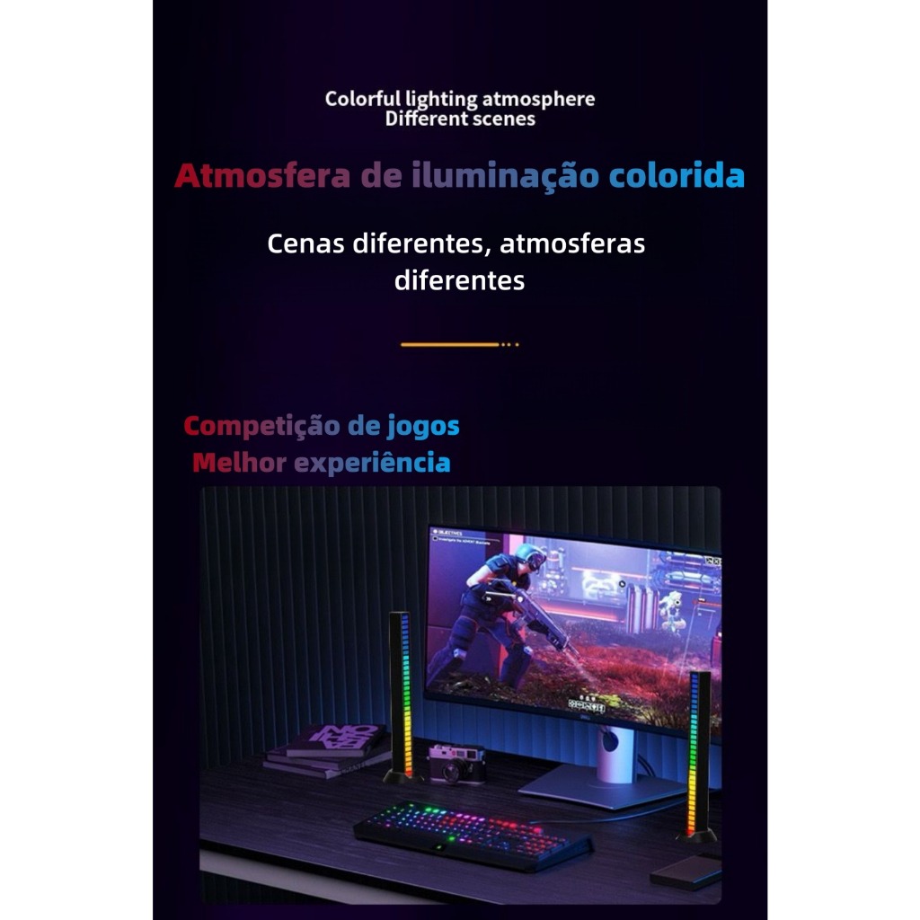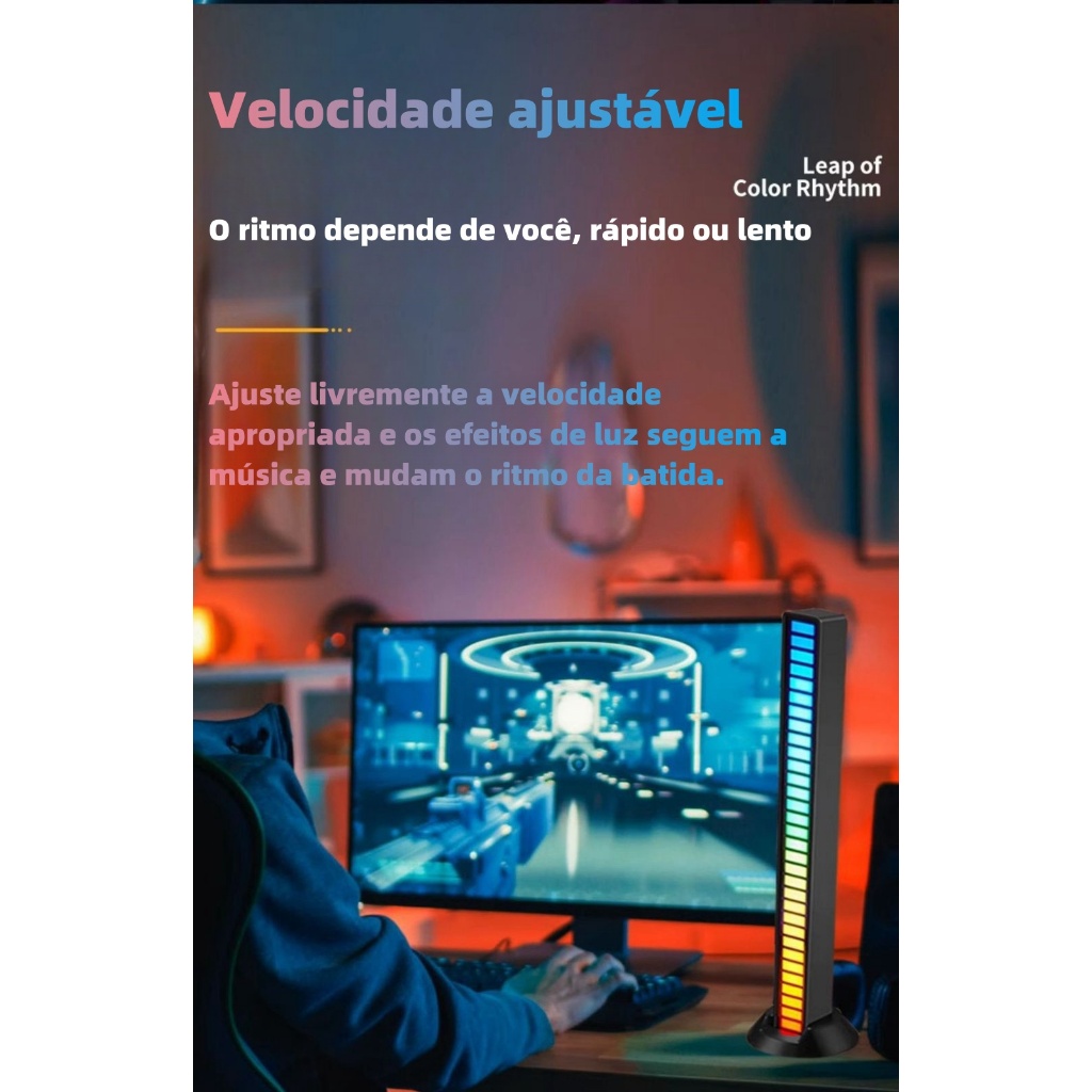 Luminária Barra Led Rgb Gamer Sensor Músical Pc Tv Notebook Rítmica Sensível
