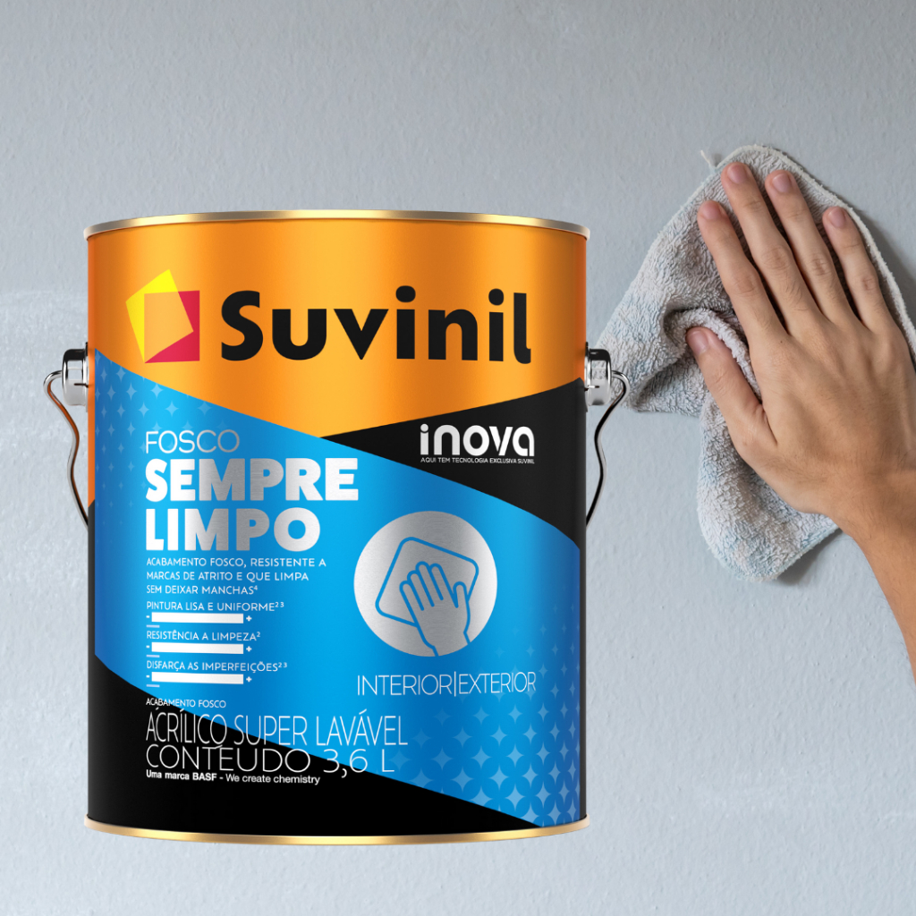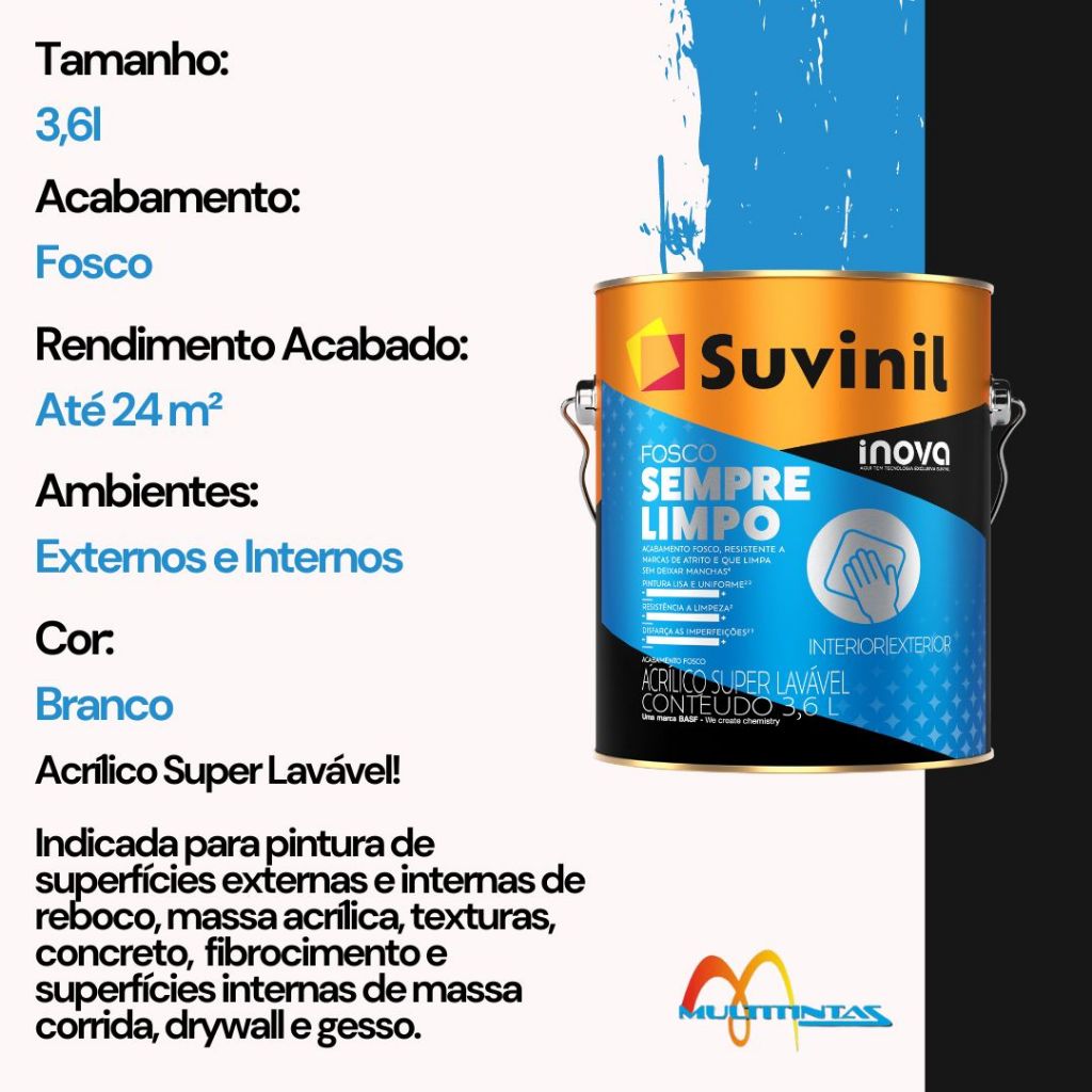 Tinta Acrílica Lavável Fosco Branco Neve 3,6l Inova Sempre Limpo Suvinil Limpável Premium