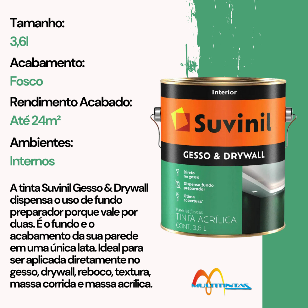 Tinta Para Gesso e Drywall Fosco Branco 3,6l Direto no Gesso e Drywall Acrílica Suvinil