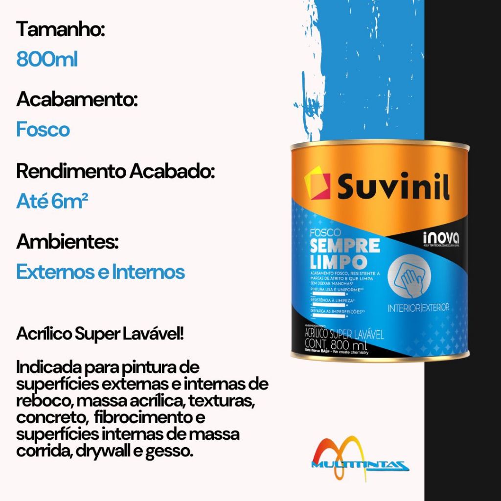 Tinta Parede Super Lavável Fosco 800ml Sempre Limpo Suvinil Escolha A Cor