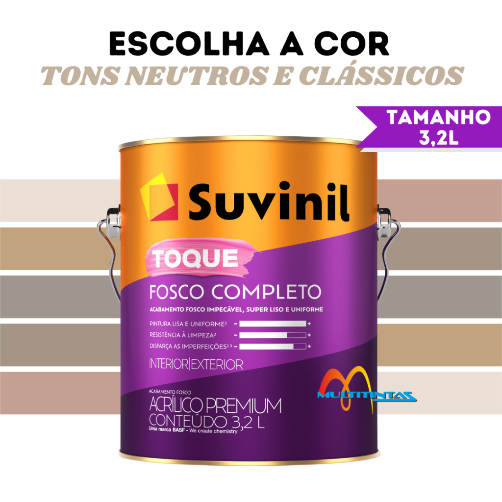 Tinta Acrílica Fosco 3,2l Tons Neutros e Clássicos Parede Toque Fosco Completo Suvinil