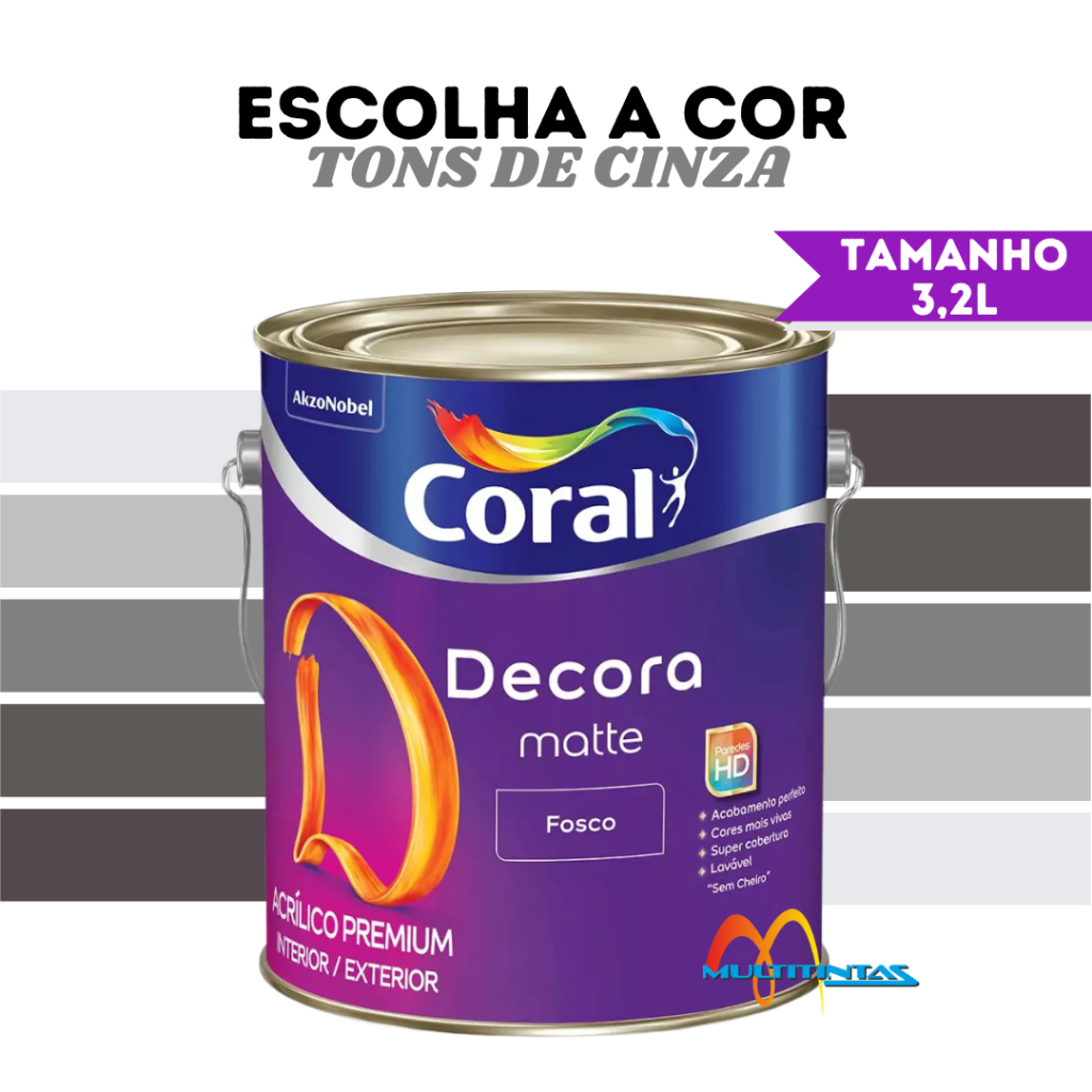 Tinta Parede Fosca Coral Cor Cinza Premium Decora Matte 3,2l Cores Cinzas Escolha o Tom